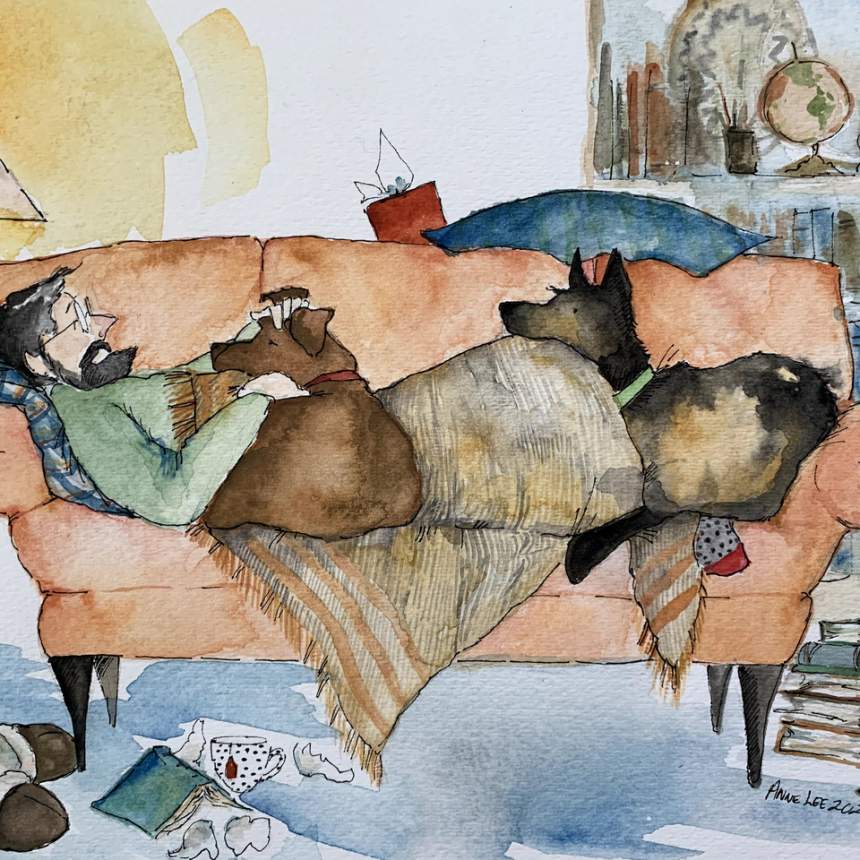 "Look, it's us," is one of my favorite things to hear from a viewer. It means that I've captured an authentic moment or story that people can relate to: reading with a child, watching a bird in the winter, sharing a cup of coffee and the morning news together. They're simple moments that capture our simple stories. I use watercolor, pen and ink and acrylics on paper or canvas to create works that glow with light, color and the warmth of a good story.