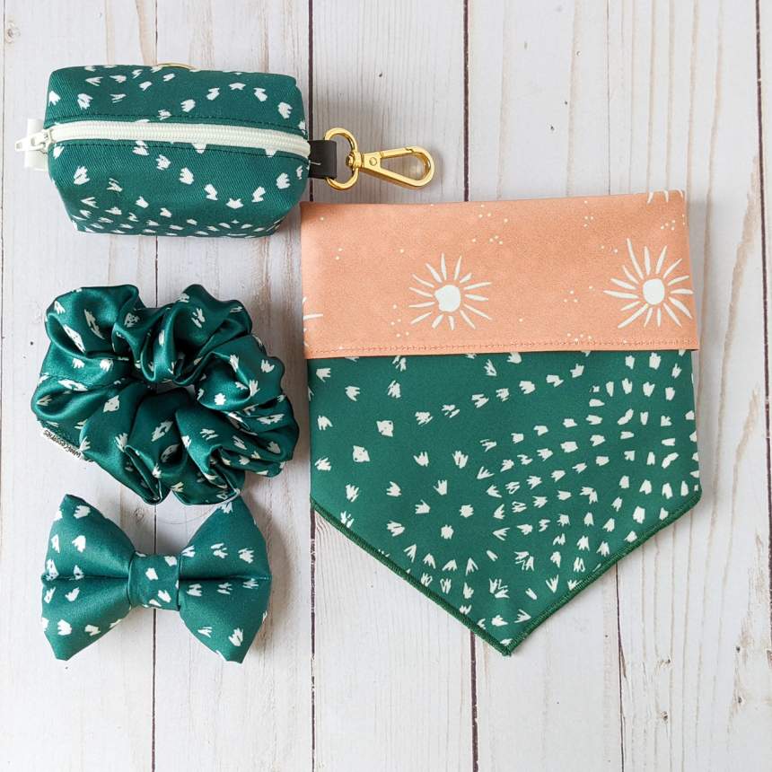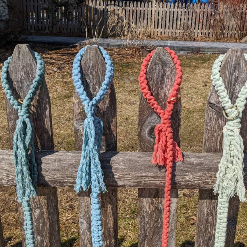 Woofcessories are pet accessories that are sewn by hand. I am increasing the number of original designs in my patterns for bandanas and bow ties. I also hand dye and macrame leashes for dogs.