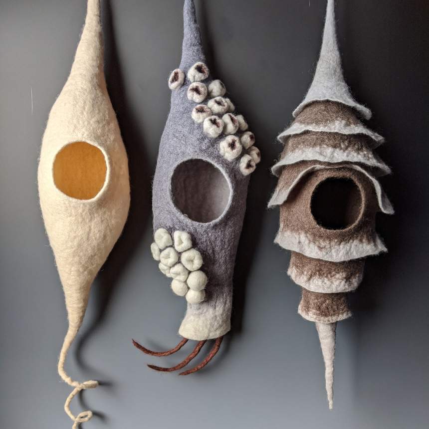 Debbie Penley is a multimedia artist with a recent concentration in fiber art. With a focus on nature and wildlife animals, her work ranges from the realistic and lifelike to the abstract and whimsical. She enjoys the tactile qualities of her work, and is often amazed at the almost magical transformation of the raw materials from a fluid state into something more enduring and solid. Debbie prefers a neutral, muted palette for many of her pieces, but takes the leap into vivid colors on occasion, delighting even herself. She creates most of her work by felting wool, either with a needle or with soap and water. The former requires the use of special needles with barbs to tangle the wool, while the later depends on agitation to help the fibers migrate into a permanent felt.