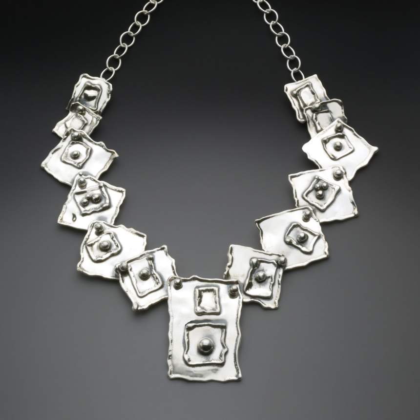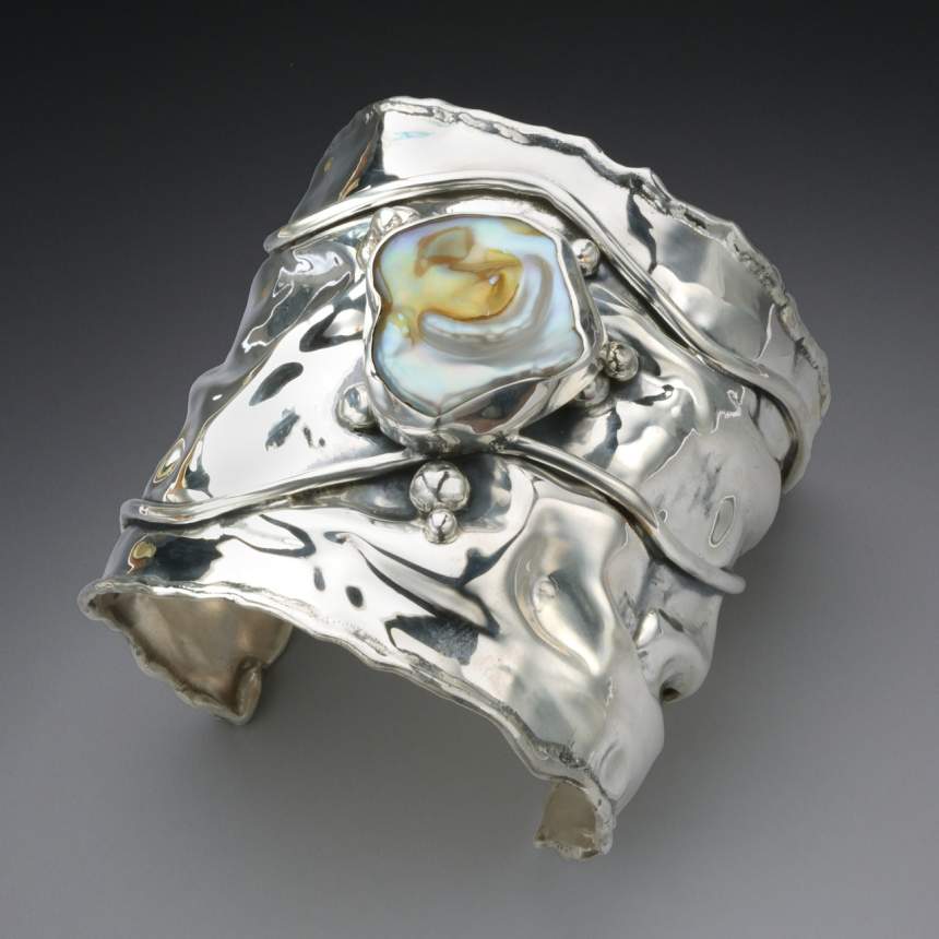 I like the idea of craftsmanship that has been a part of every culture. Jewelry, as personal adornment, is as old as mankind. As with all things, I draw from the past but work very much in the present offering an elegant, fun, bold, contemporary look. I work primarily in sterling silver. Each piece is hand fabricated and one of a kind. Techniques used are fold forming, air chasing and forging. Typical enhancements include gemstones, minerals and/or pearls. Patina is applied to enhance the sculptural aspect of each piece. My work is an essential part of who I am. It satisfied a needed realization of expression .