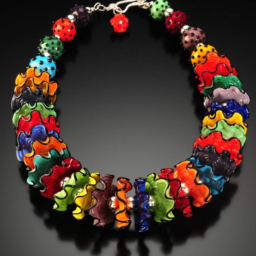 Using a torch that is fueled by oxygen and propane glass rods are melted to a molten state and transferred to a mandrel (stainless steel rod), creating the initial base part of the bead. At this point the creative process begins as I manipulate the molten glass using heat, gravity and tools. I then add textures by using frits, powders, stringers and foils. I am fascinated by the beginning stage of cold solid glass being transformed into a molten state and the freedom to create and mold it into my own unique design. And the glass returning to a solid state showing my creative expression. I have long had a love and attraction to bright bold colors. I find the shiny, high gloss, bright color combination of my lampwork beads appealing and just fun. I so enjoy the entire process, it is my hope that it carries over to my customer’s enjoyment of wearing my lampwork glass beaded jewelry.