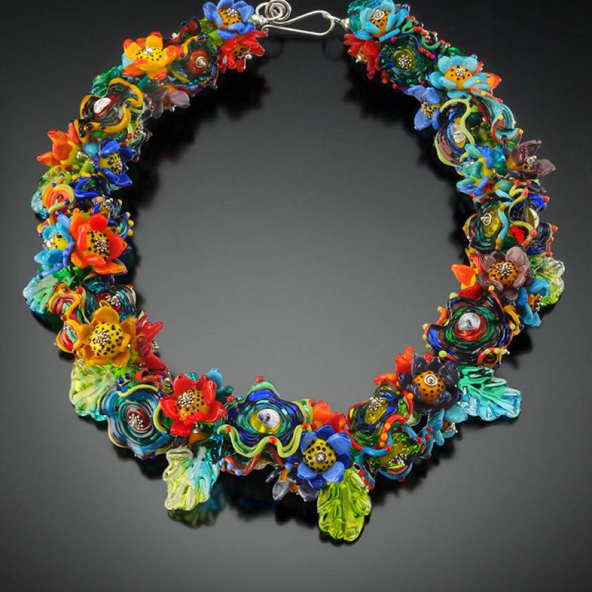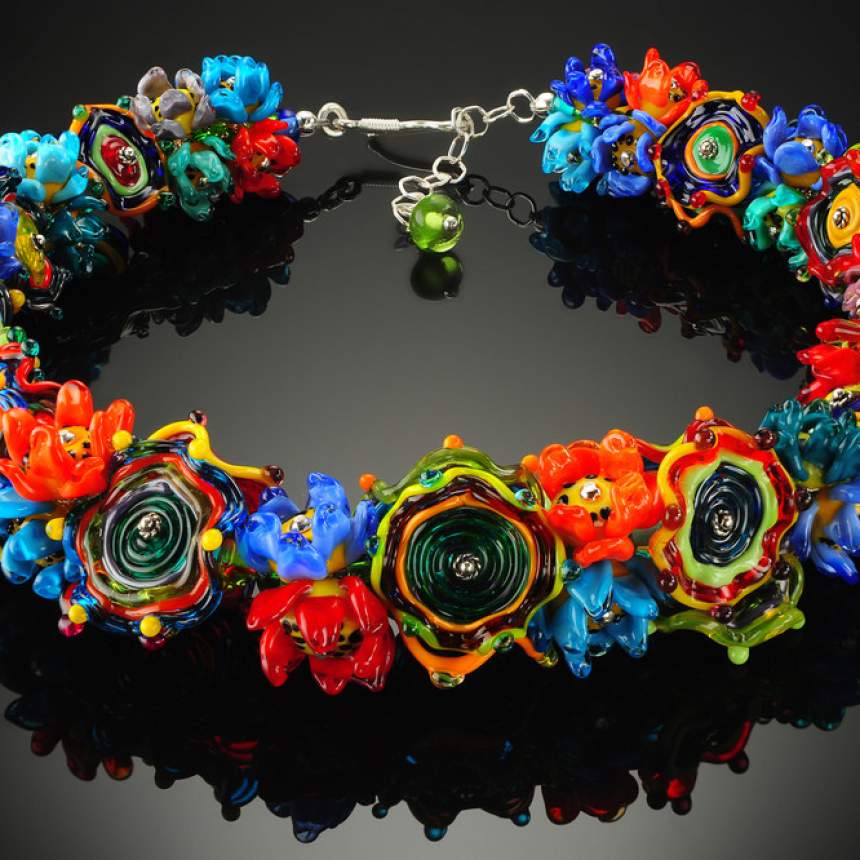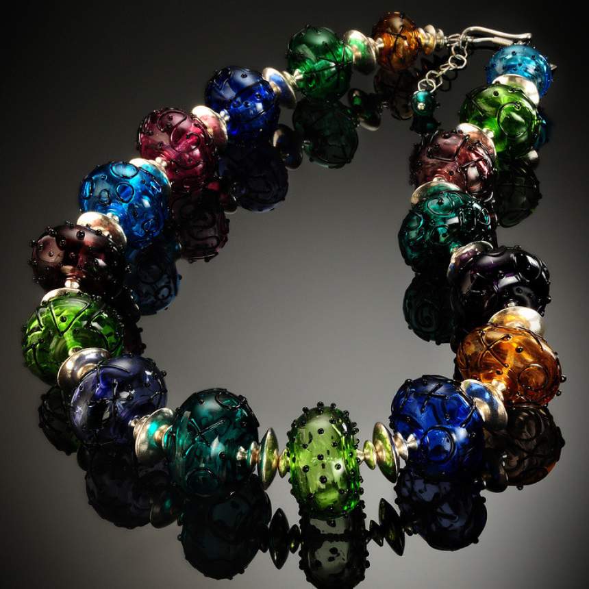 Materials and techniques: Successful lampworking uses a precise mixture of oxygen and propane, where glass rods are melted onto a mandrel and manipulated by using gravity and other various techniques/tools, then by adding decorative accent materials (frit, enamels, and foils) each bead becomes one of my original bright and beautiful works of art!