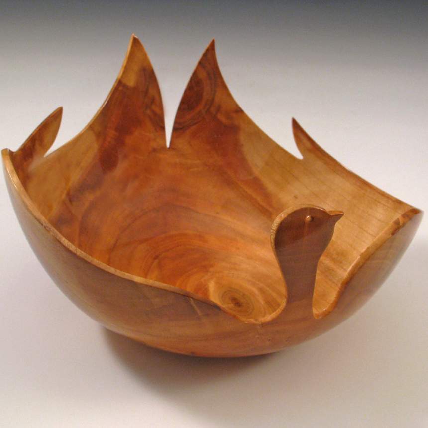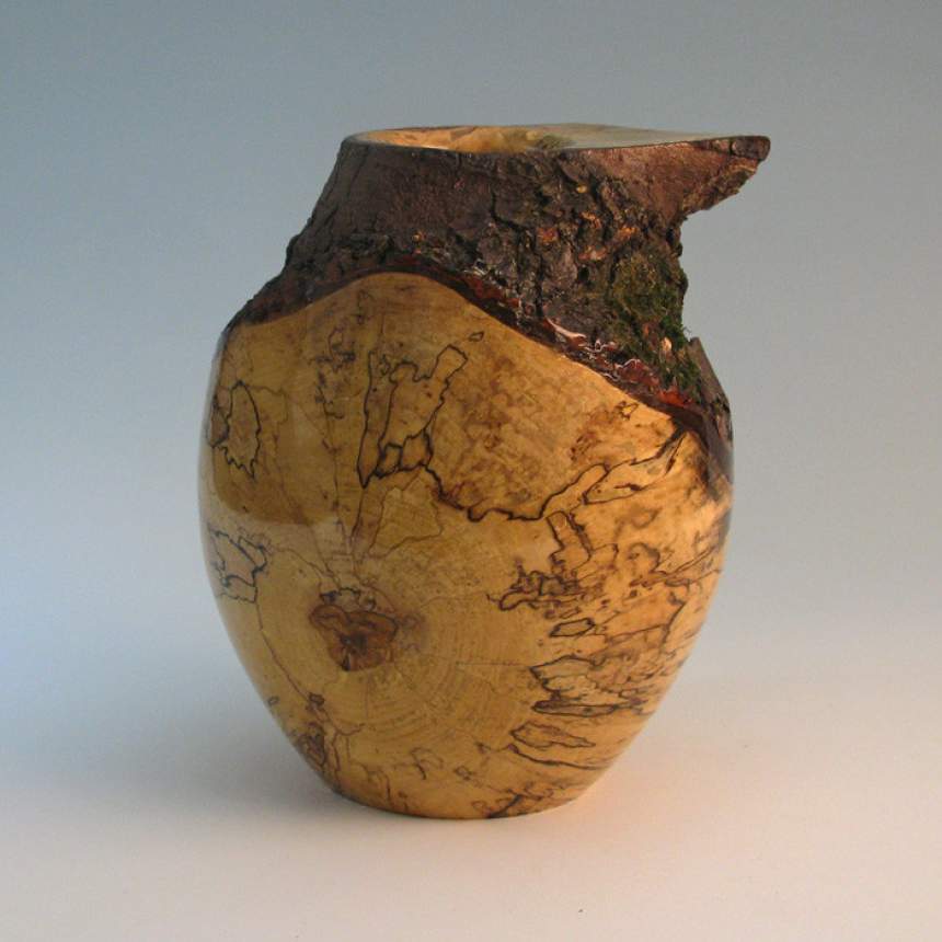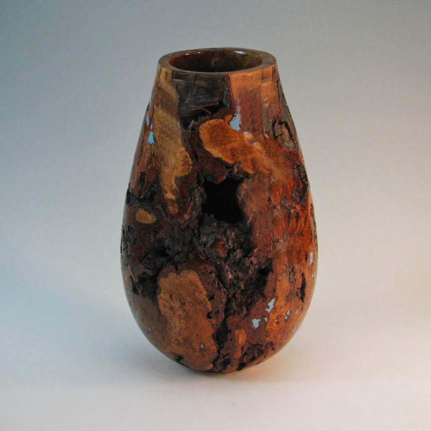 My artwork is turned to shape on a wood lathe. I use primarily domestic lumber, 90 percent of which comes from the East Coast forests. Most of the material is harvested from northern Florida, where I live, and from places I visit during art shows. The wood is all reclaimed. I am always looking for twisted, irregular grain patterns and unique growths, or burls, which provides exciting inspiration. Once turned to shape on the lathe, the rough piece is set aside to dry, which can take up to a year, depending on the size and type of wood. After a period of time, the piece is turned again to remove the rough surfaces, checks (cracks), and warped edges. Satisfied with the final shape of the piece, I then begin the sanding and finishing processes, which will bring out all the colors and patterns in the wood. The finish for each piece is brushed by hand to a high gloss.