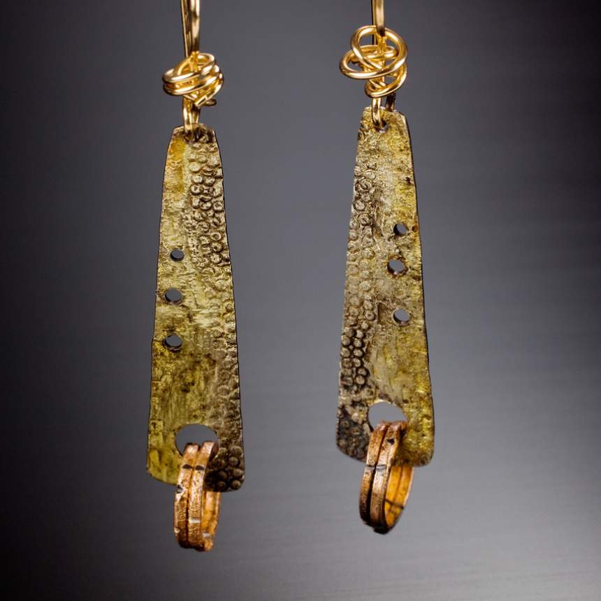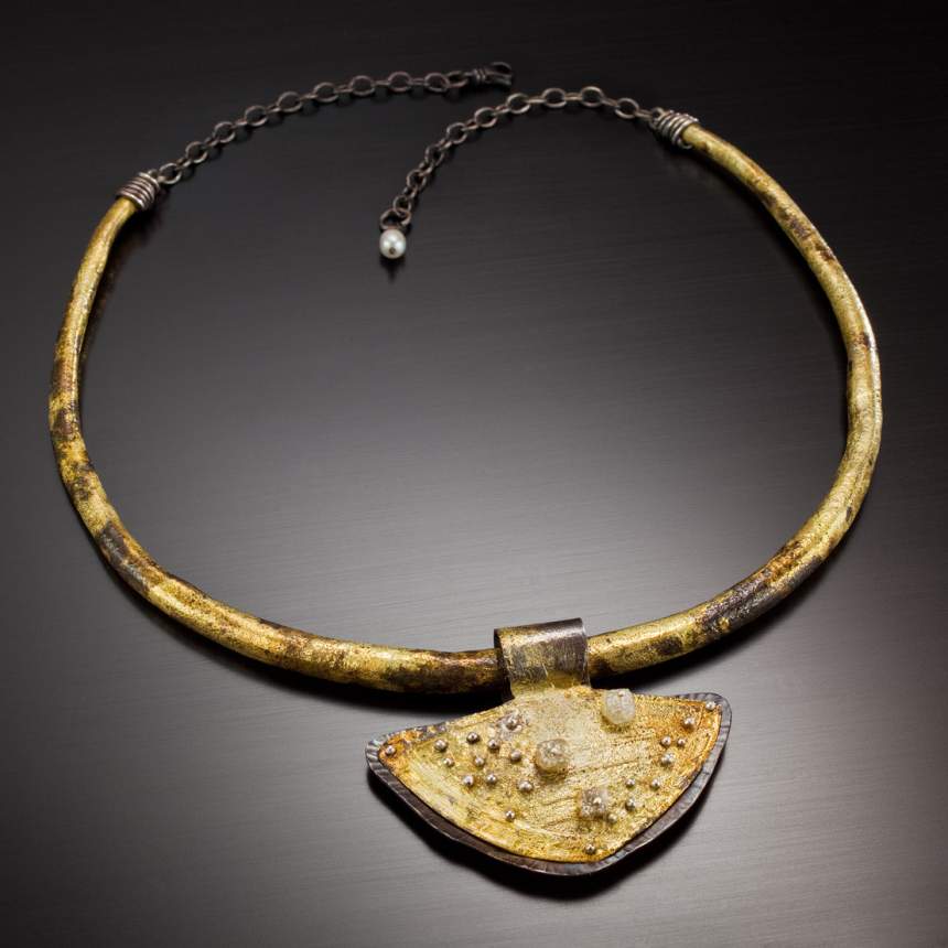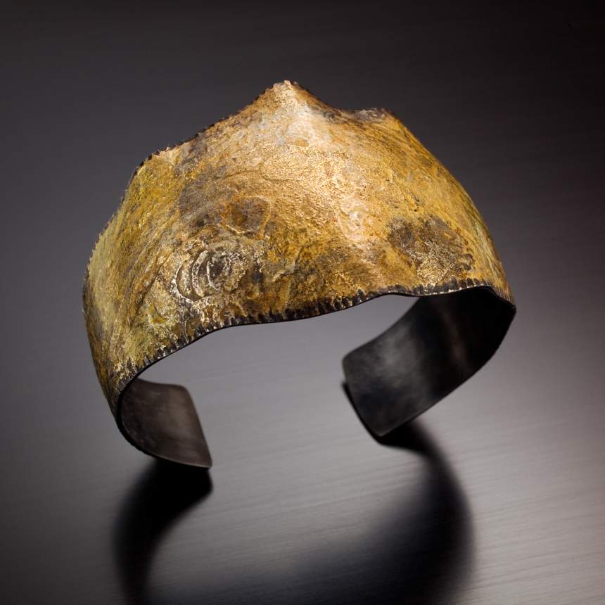 Jewelry is hand fabricated using various types of metals,14-20karat gold that I alloy for specific color and workablility, silver and iron. Metals are manipulated using traditional metalsmithing techniques such as forging, reticulation, engraving, texturing, crimping, soldering and brought to an appropriate polish. Gems are incorporated to bring color and balance to the pieces using hand made bezel and prong settings to enhance the stones.