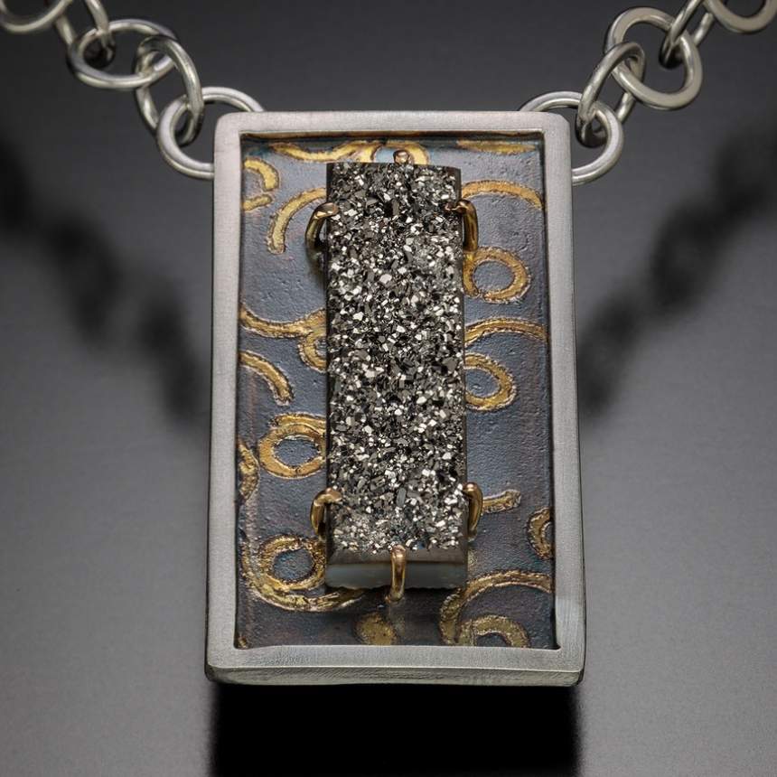 Jewelry is hand fabricated using various types of metals,14-20karat gold that I alloy for specific color and workablility, silver and iron. Metals are manipulated using traditional metalsmithing techniques such as forging, reticulation, engraving, texturing, crimping, soldering and brought to an appropriate polish. Gems are incorporated to bring color and balance to the pieces using hand made bezel and prong settings to enhance the stones.
