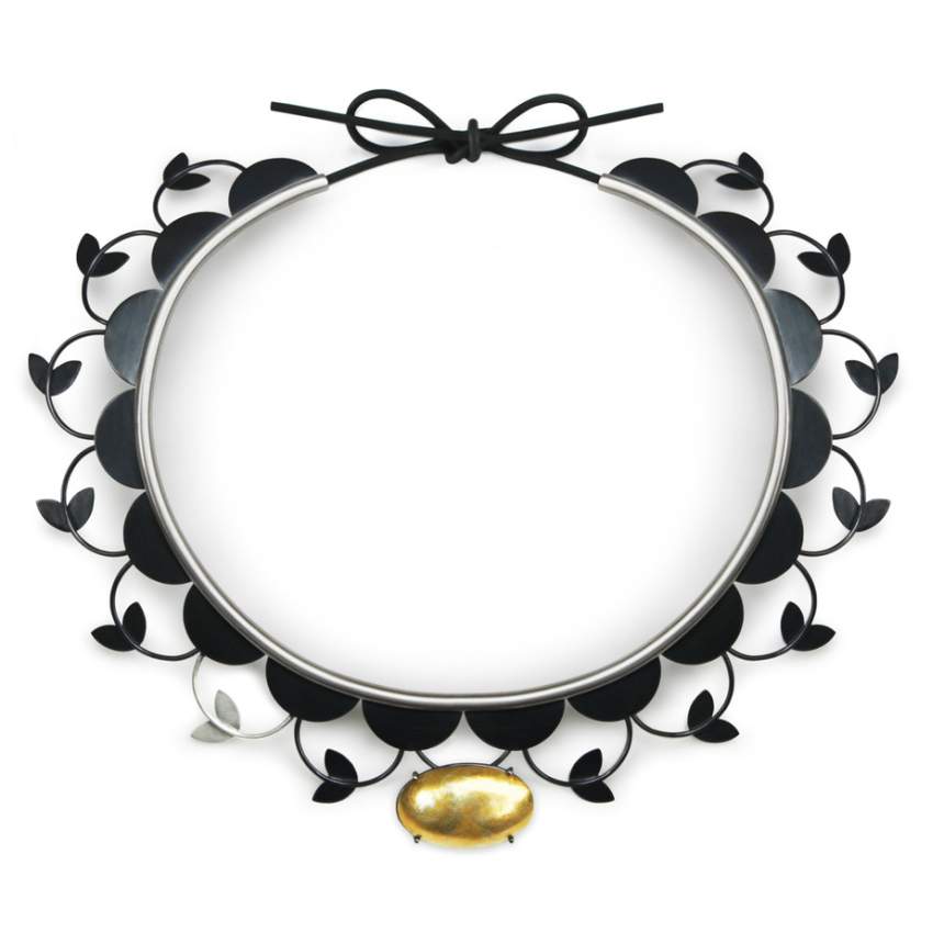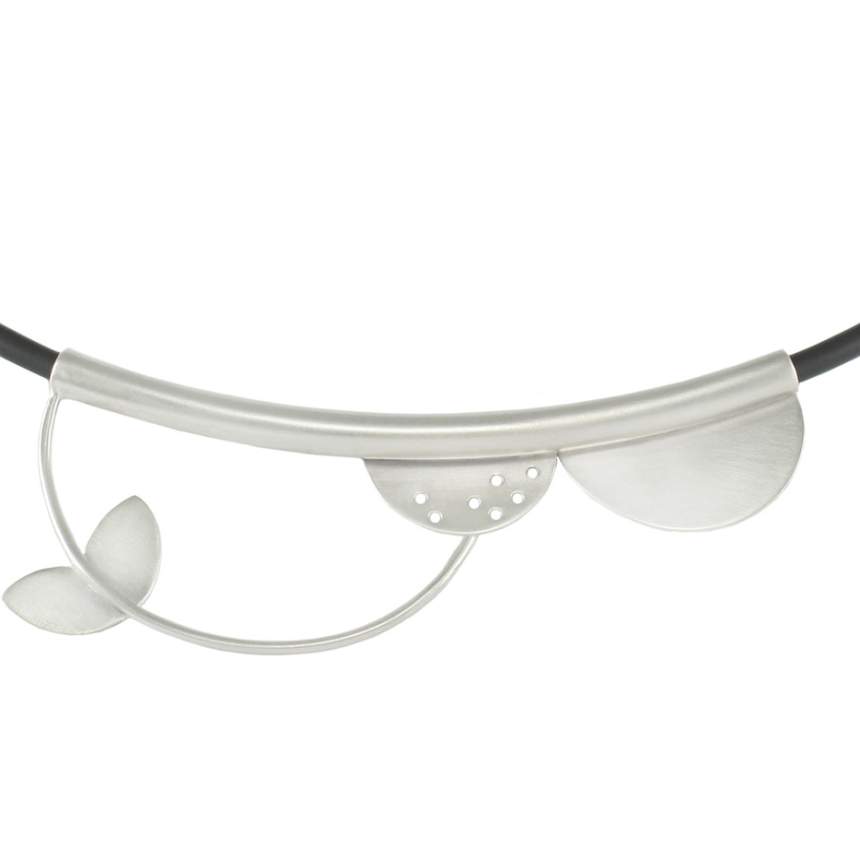 I combine sterling silver, gold and gemstones with shapes found in nature to create interpretive works of wearable art. Using traditional metalsmithing techniques such as soldering, hammering, sawing, forming and stone-setting, I fabricate metal sheet and wire into a body of work that strives to create a balance between hard and soft, modern and organic, contemporary and traditional. To emphasize that contrast, I incorporate alternative materials such as rubber and rough cut gemstones into my work. My body of work endeavors to maintain an organic quality while still feeling modern, and aims to not only mimic nature, but to interpret and celebrate it.