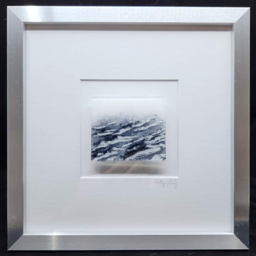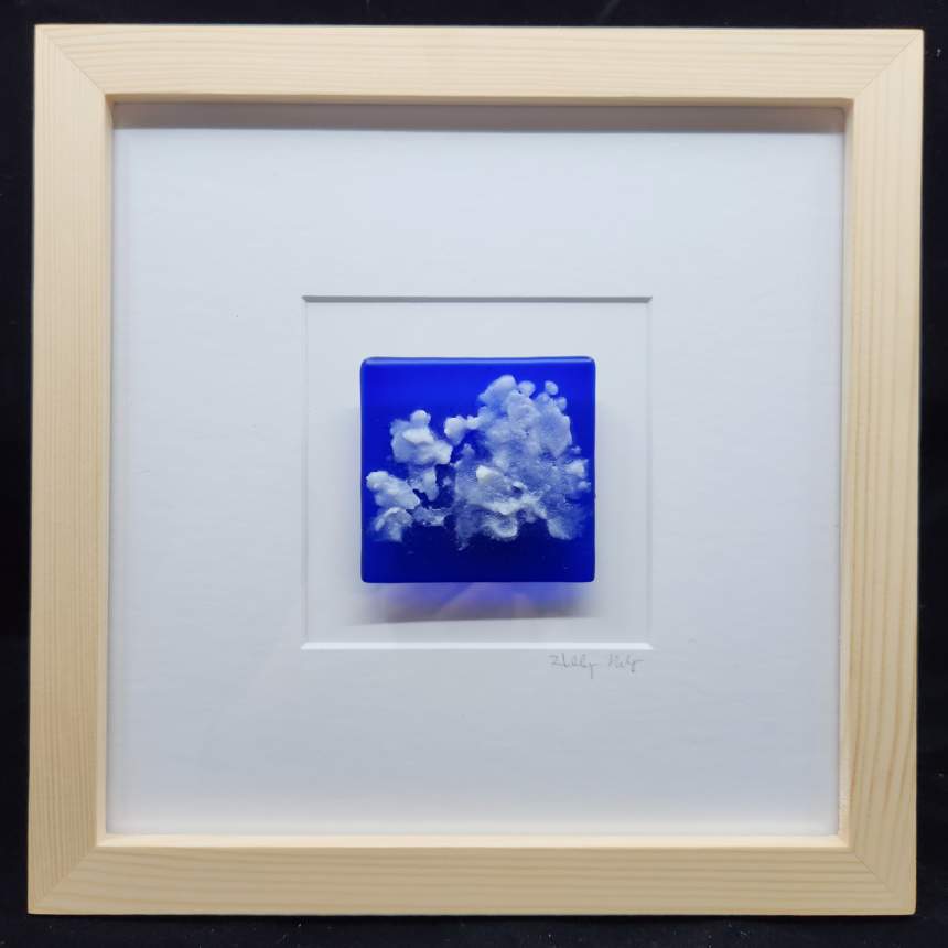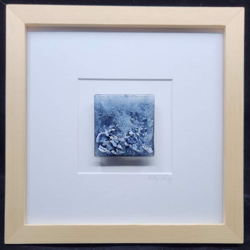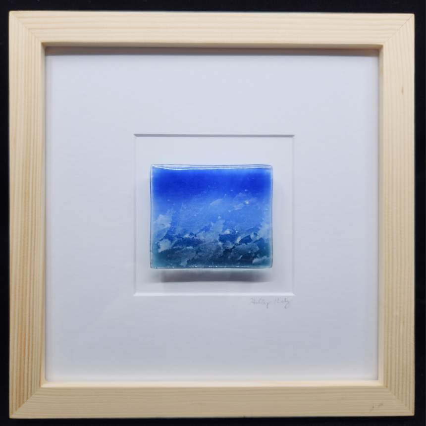 Kiln-formed glass wall art. The glass is fired, cold-worked, and shaped into the finished piece.