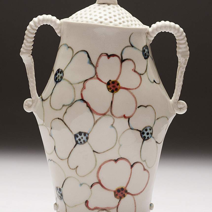 Exploring form, texture, and light as it applies to translucent forms is the current direction of my work. I am working with porcelain, the best I can make using fine European porcelains as my inspiration. To increase strength and workability to the raw clay I fold recycled paper and cotton fibers into the clay mix. This is commonly referred to as "Paperclay". I then fire the finished work to cone 13, nearly 2,700 F. I form each piece either by printing texture onto the surface of the clay or by paining underglazes on the surface for color. I then fold the cutout clay slab to obtain the shape desired. I strive to find movement and especially attitude in my work. Although there are traditional aspects of my work, I do produce functional pottery, the true intent is to produce pottery that is fun, relaxed, and contemporary. I produce all of the work in my studio without apprentices or employees and without any commercial glazes or clays.