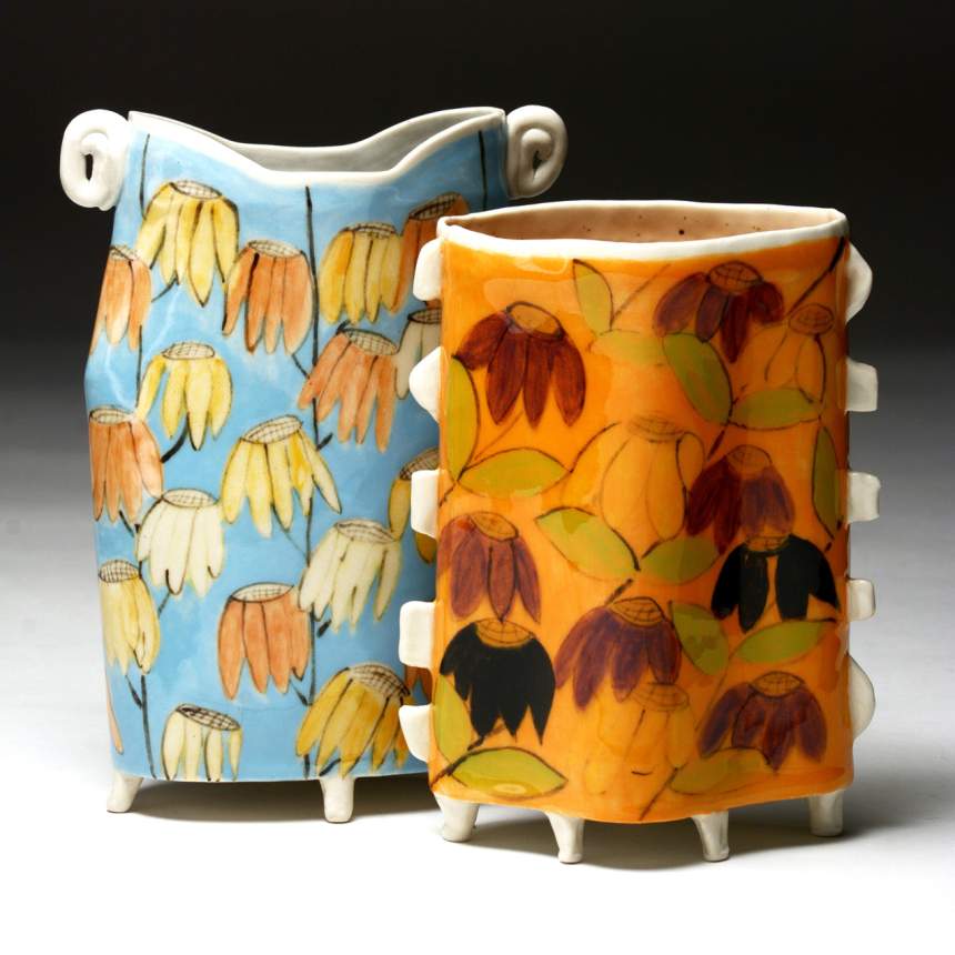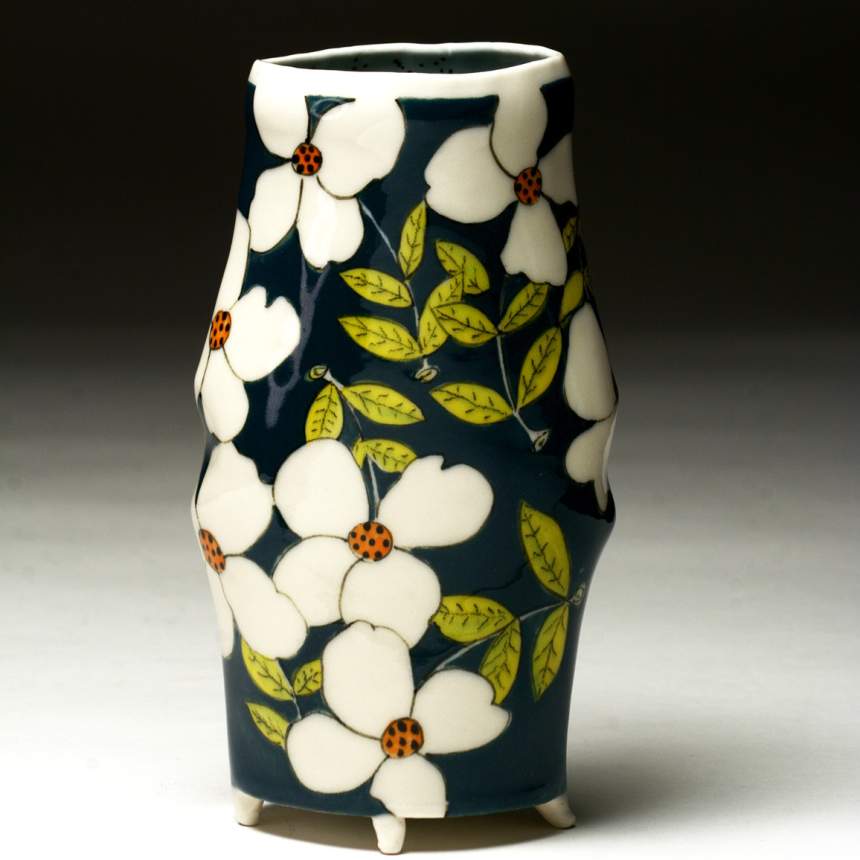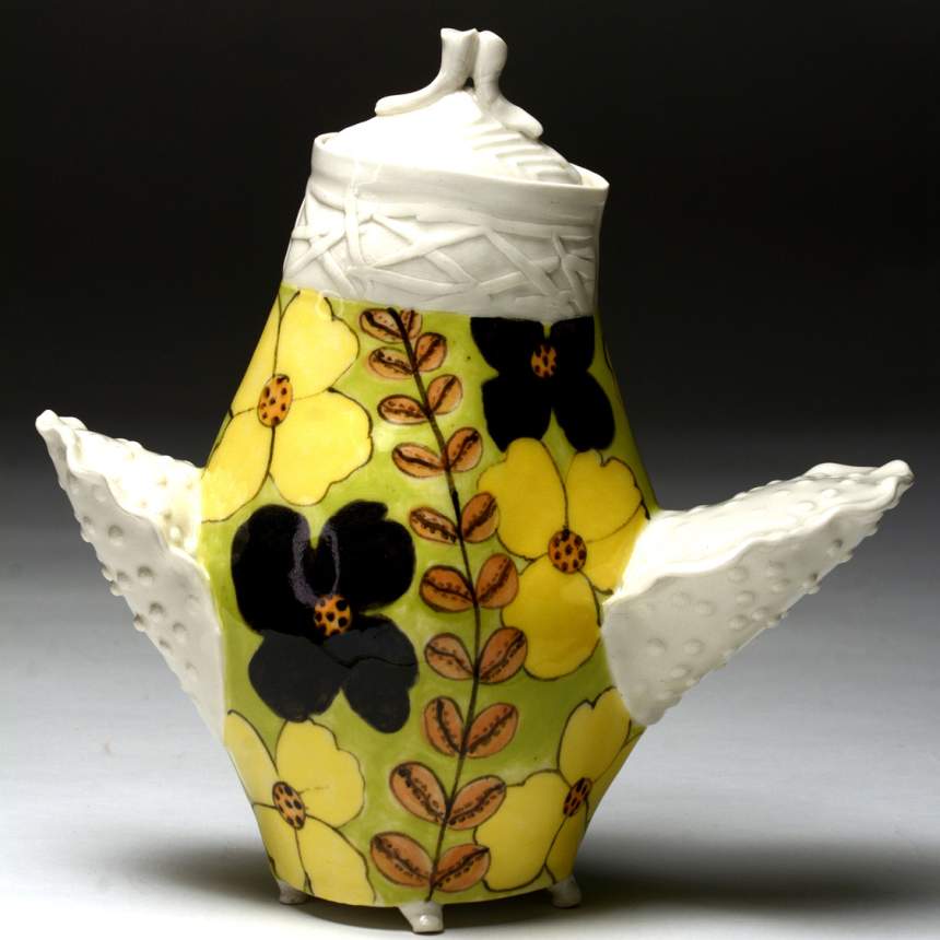 Exploring form, texture, and light as it applies to translucent forms is the current direction of my work. I am working with porcelain, the best I can make using fine European porcelains as my inspiration. To increase strength and workability to the raw clay I fold recycled paper and cotton fibers into the clay mix. This is commonly referred to as "Paperclay". I then fire the finished work to cone 13, nearly 2,700 F. I form each piece either by printing texture onto the surface of the clay or by paining underglazes on the surface for color. I then fold the cutout clay slab to obtain the shape desired. I strive to find movement and especially attitude in my work. Although there are traditional aspects of my work, I do produce functional pottery, the true intent is to produce pottery that is fun, relaxed, and contemporary. I produce all of the work in my studio without apprentices or employees and without any commercial glazes or clays.