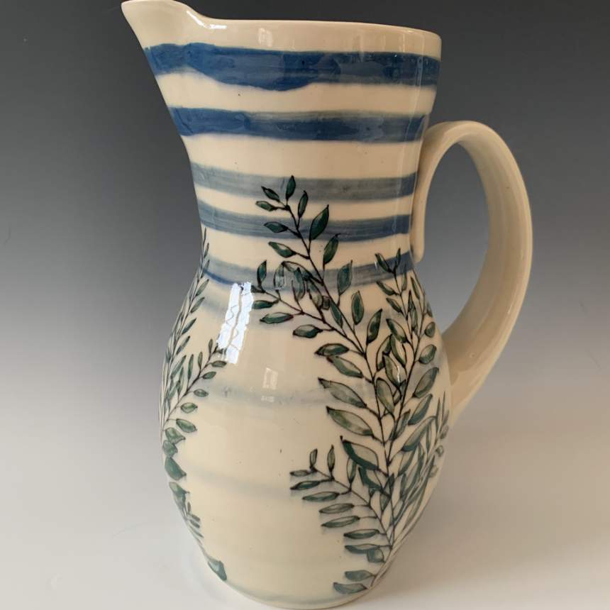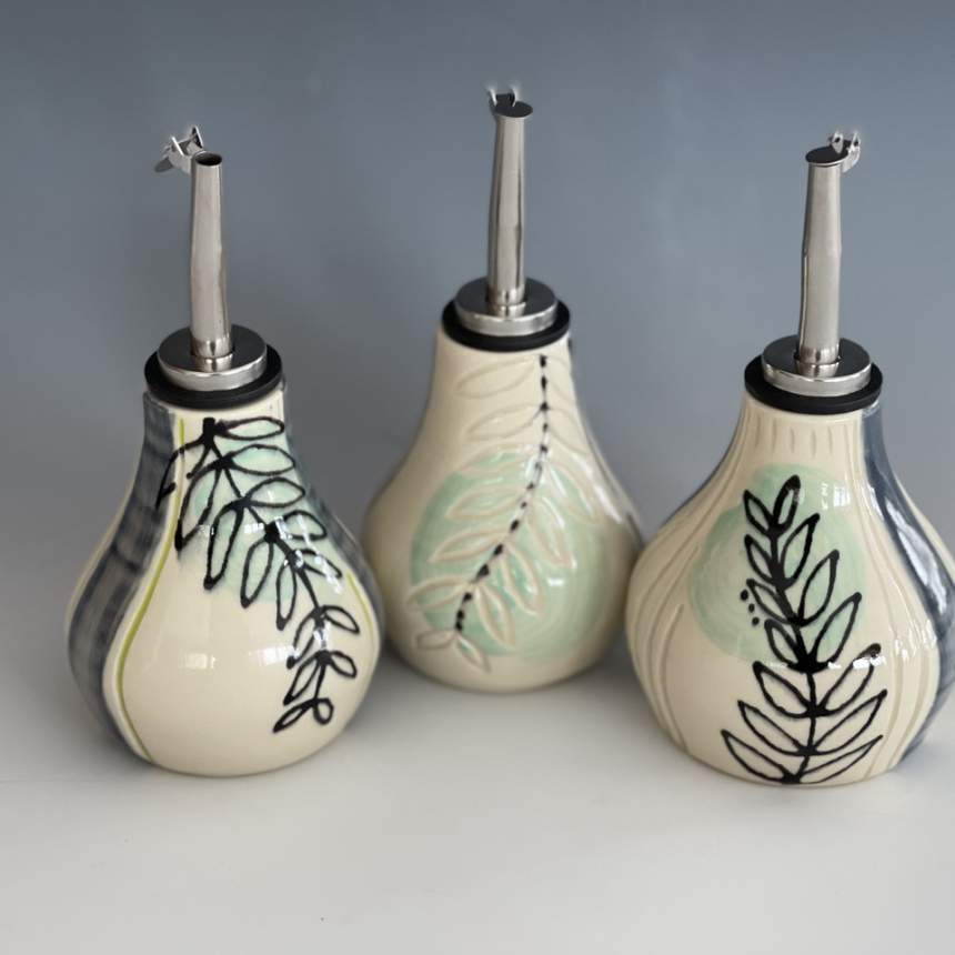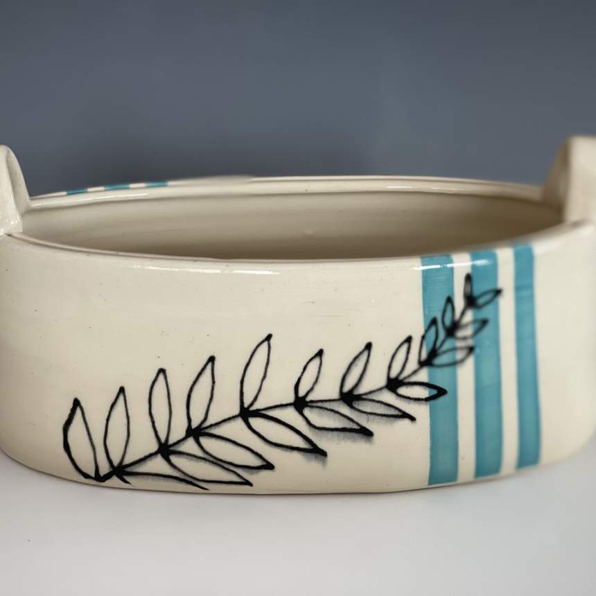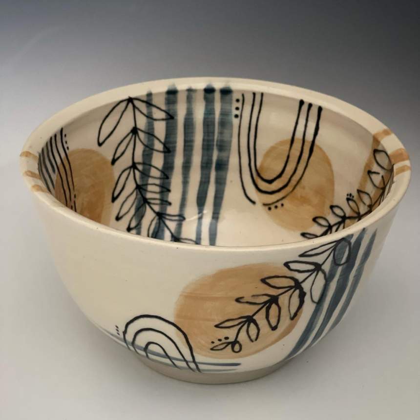 With a focus on utilitarian pottery forms, I strive to create beautiful, well crafted, functional forms that people will enjoy. They are designed for display and engagement in the home and day to day life. I hope that even the smallest of details such as the way the handle fits in your hand or the angle of the lip are pleasant areas for use. The surface's are painterly yet influenced by my graphic design background. My pots allude to the industrial or commercial; they are familiar enough that people will relate to them but upon further inspection the hand and qualities that I put into my work are evident. Each step of the process during making is well considered. Pots become a part of our eating and drinking habits and/or rituals allowing for us to serve food with ceremony. I create these pieces through the wheel and hand alterations. I create my surfaces through a variety of decoration techniques including colored slips, underglazes and glazes.