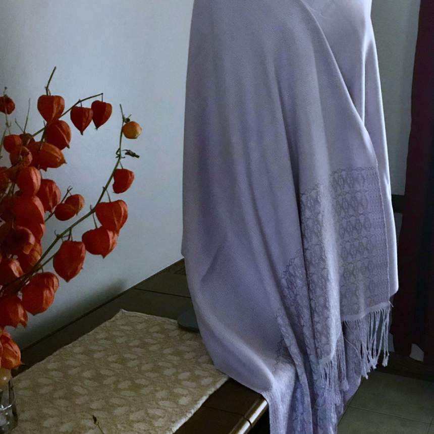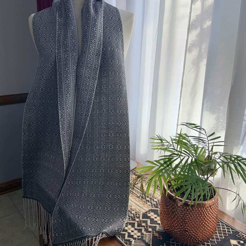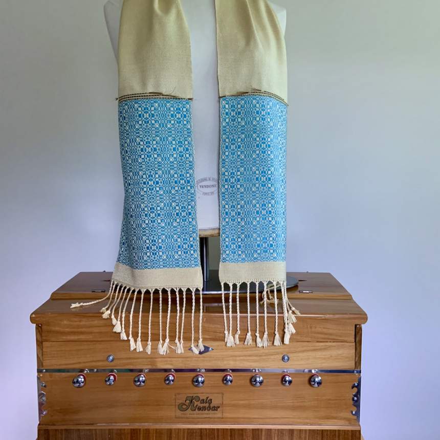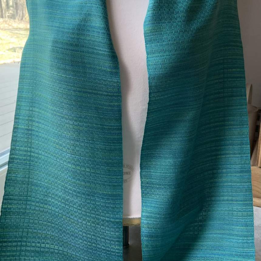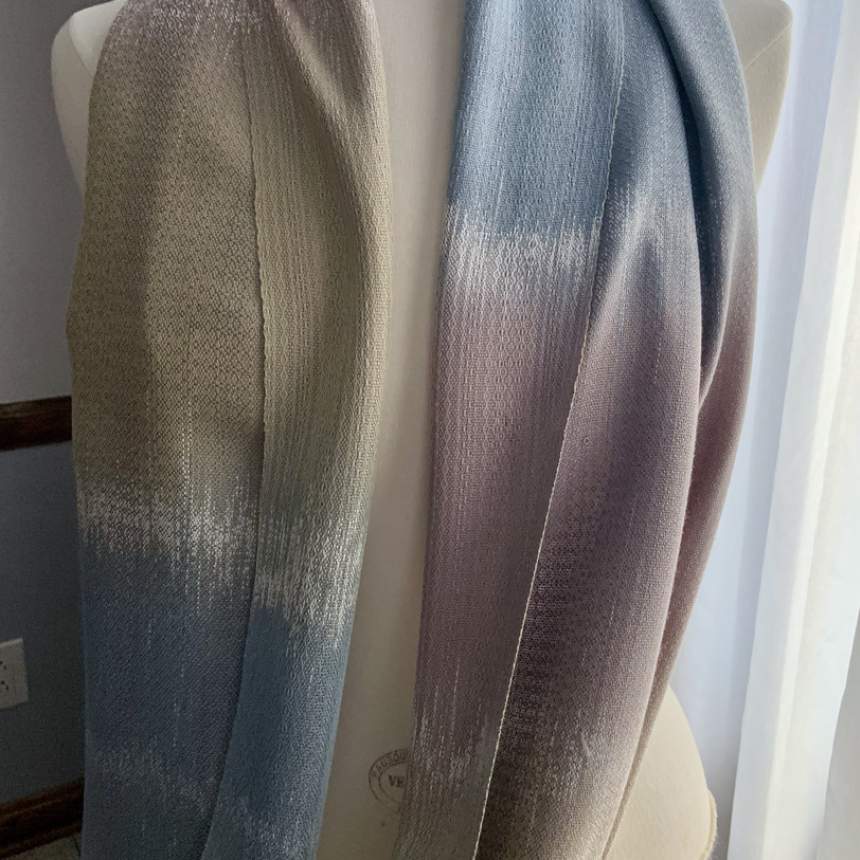 Weaving is a tactile process, and this collection of scarves uses a variety of fibers, including tencel (lyocell), silk, bamboo, cotton blends, a cellulose fiber called modal, and even recycled pop bottles! For some scarves, I hand paint the warps with dye and weave them in patterns that allow the color to shine through. I also use Japanese Bengala mud dyes to dye the warp threads of some scarves. This is a sustainable process which does no harm to the environment. Every scarf is finished by hand with double hemstitching and hand-manipulated fringe. Although this is an extra step for me, it gives each scarf a finished look that is elegant and clean. Every scarf is different. Every scarf is a wearable piece of art. I prefer to weave with very fine threads, even though this makes the process longer. These threads result in amazing drape and feel of the material.
