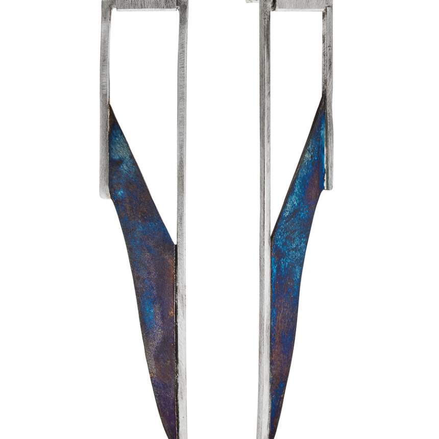 My jewelry focuses on contemporary adaptation of architecture and the creation of open spaces. Attention is drawn inward through interior embellishment in the form of tonal differences using silver, patina'd copper, steel, gold. I employ form folding, hollow formation, marriage of metals, and KeumBu.
