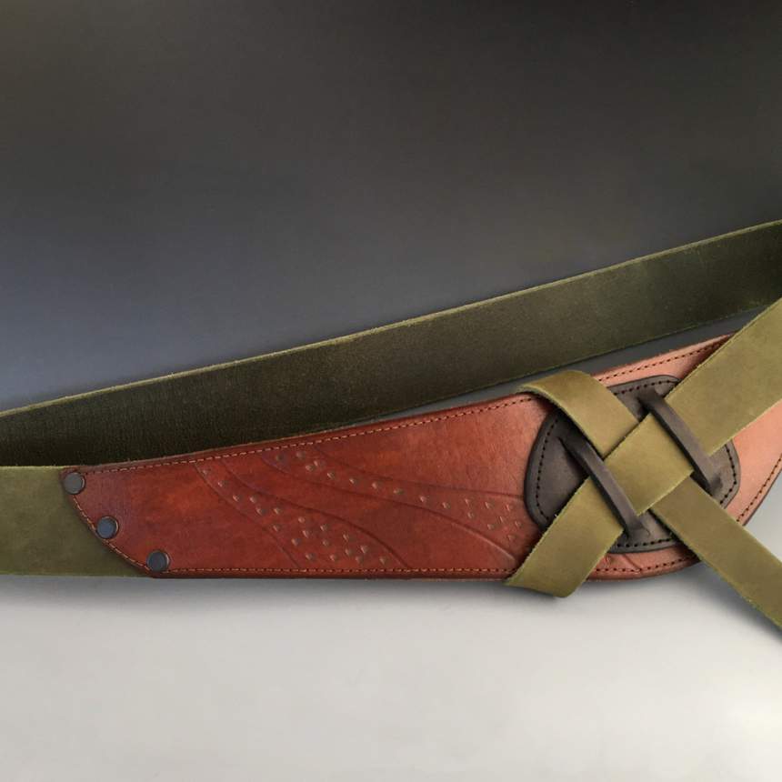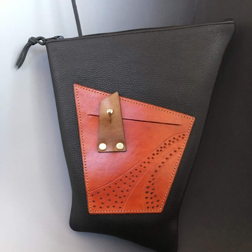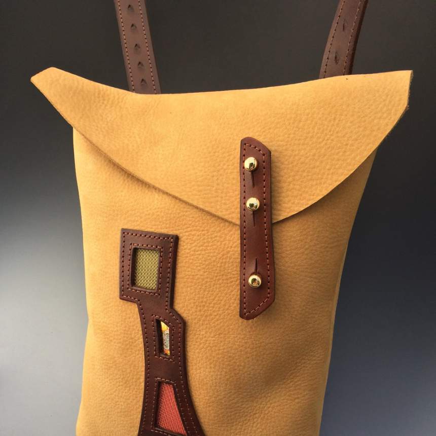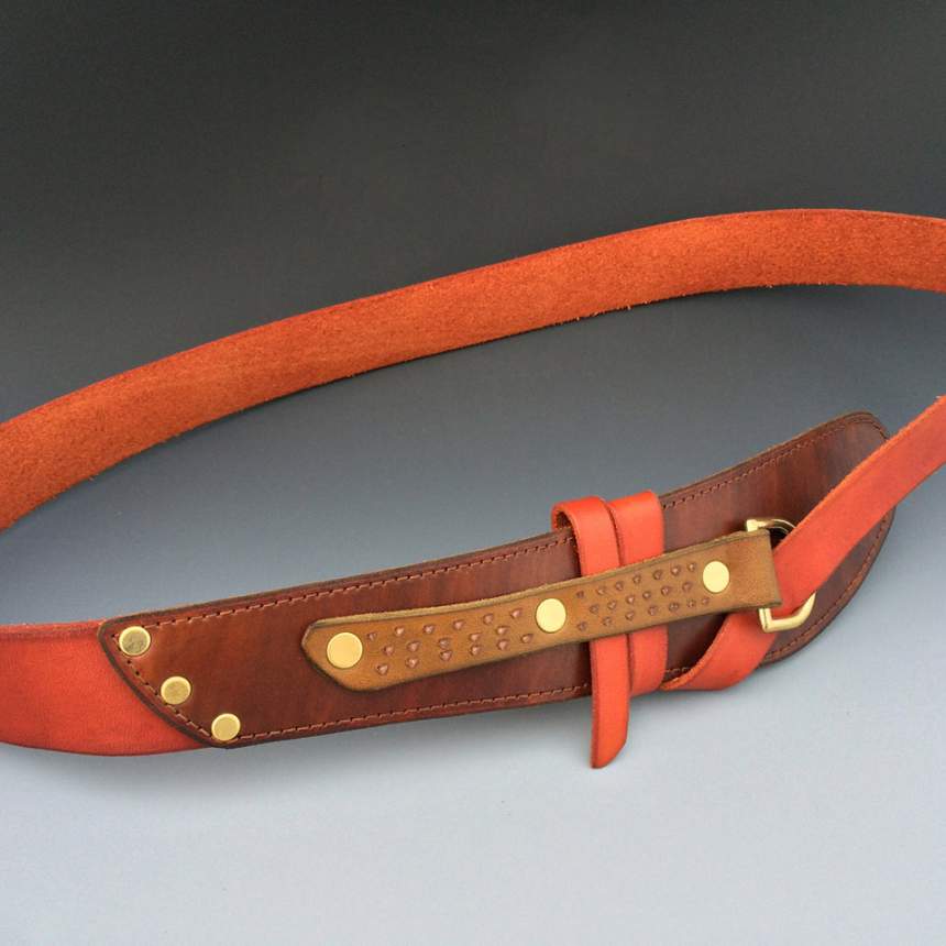 I strive for simple, clean lines in leather, incorporating subtle details to make my work intimate and personal. Innovative designs, bold colors, concept, form, and function are my primary considerations. I hand-cut the leather and dye my own colors. Exotic leathers are not part of my work. Managing my one-person company, I live in "the middle of nowhere" in upstate New York.