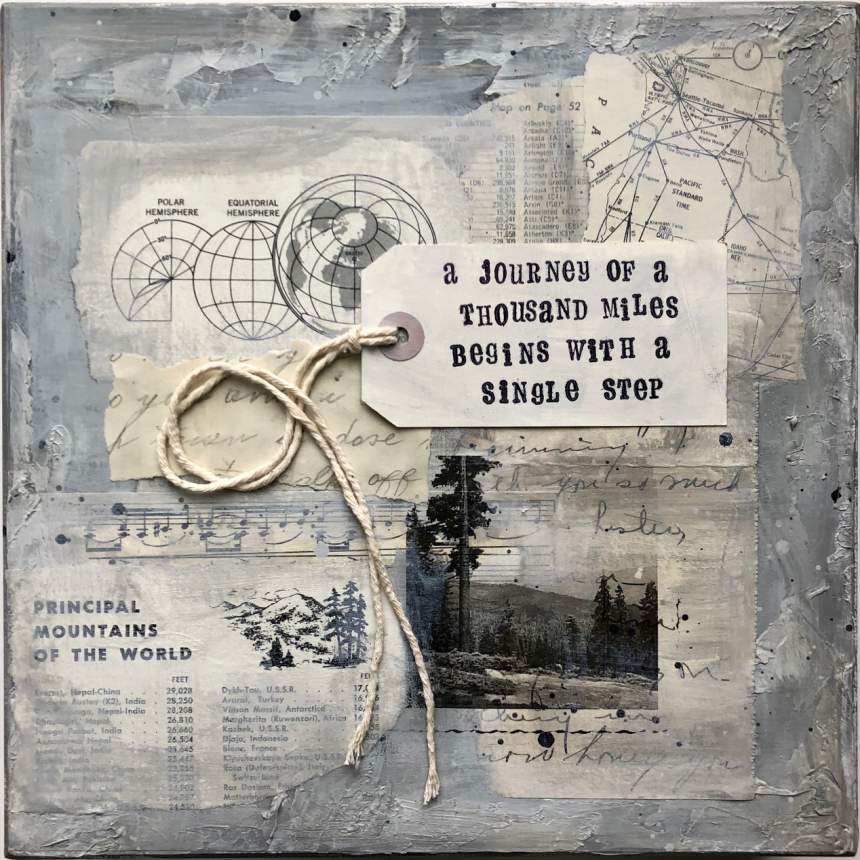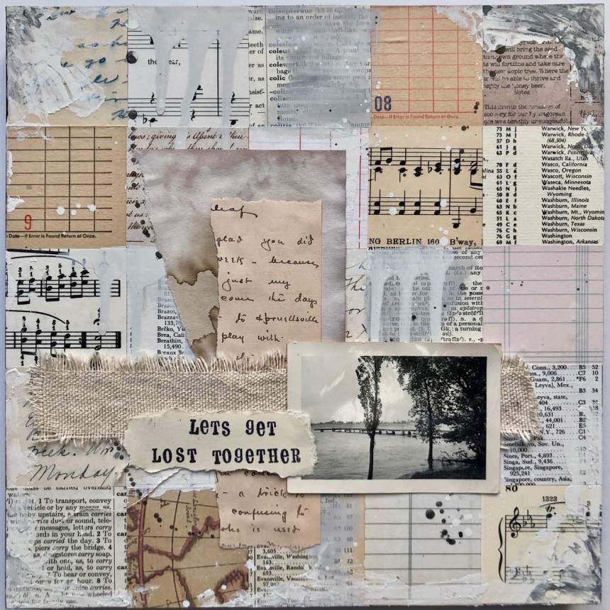 Mixed media paper and collage art specializing in the use of vintage paper. Materials include book pages, sheet music, maps, and other paper ephemera. I work towards creating connections between people and their experiences though the use of materials that have a deeper meaning than the paper they are printed on. The process of taking many layers of paper and creating a new concept and composition is what I enjoy most about my work. Themes of the original artwork include travel and music, attained through the use of appropriate paper, imagery, and selected quotes. The use of vintage materials allows for the creation of one of a kind art that preserves memories and images of the past.