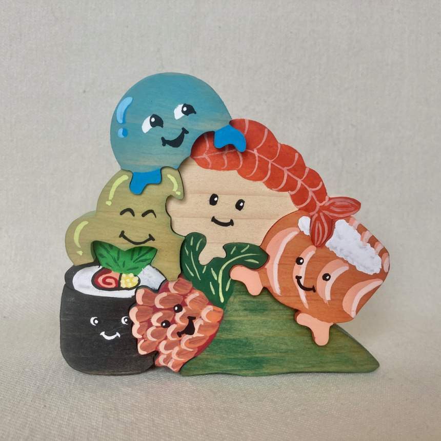 Creating unique and original art puzzles has been our passion since 1984. All of our work is individually cut by hand on a scroll saw, sanded, stained and painted. To share both new an treasured designs continues to bring joy to our hearts. With respect to our natural world as well as human kind, our work is safe and non-toxic This year's images reflect our love of nature. Using color, design and imagination to bring our puzzles to life.