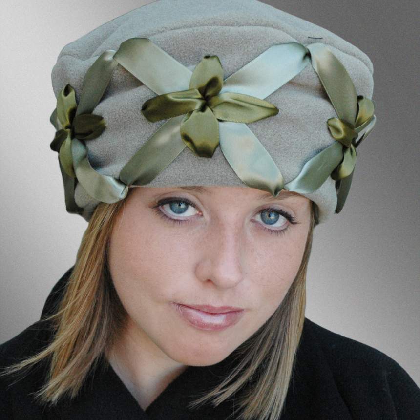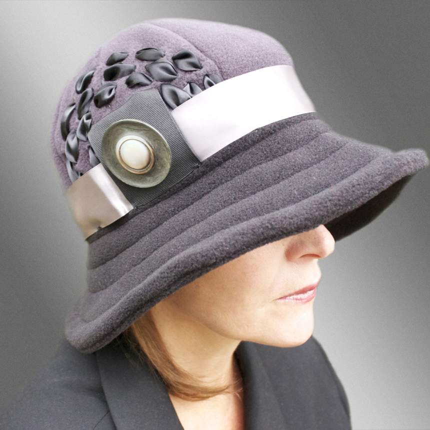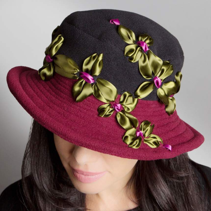 I take hat shapes and hand working techniques from a variety of cultures and time periods, and look at them through an artist's eye. I combine high-tech modern materials with old world hand working techniques, reinterpreting them and bringing them into the 21st century. I then manipulate and add on to the form, poking holes and stitching with satin ribbon, stripes of fleece and hand formed details blending the hi tech fabric with traditional hand work to make my hats.