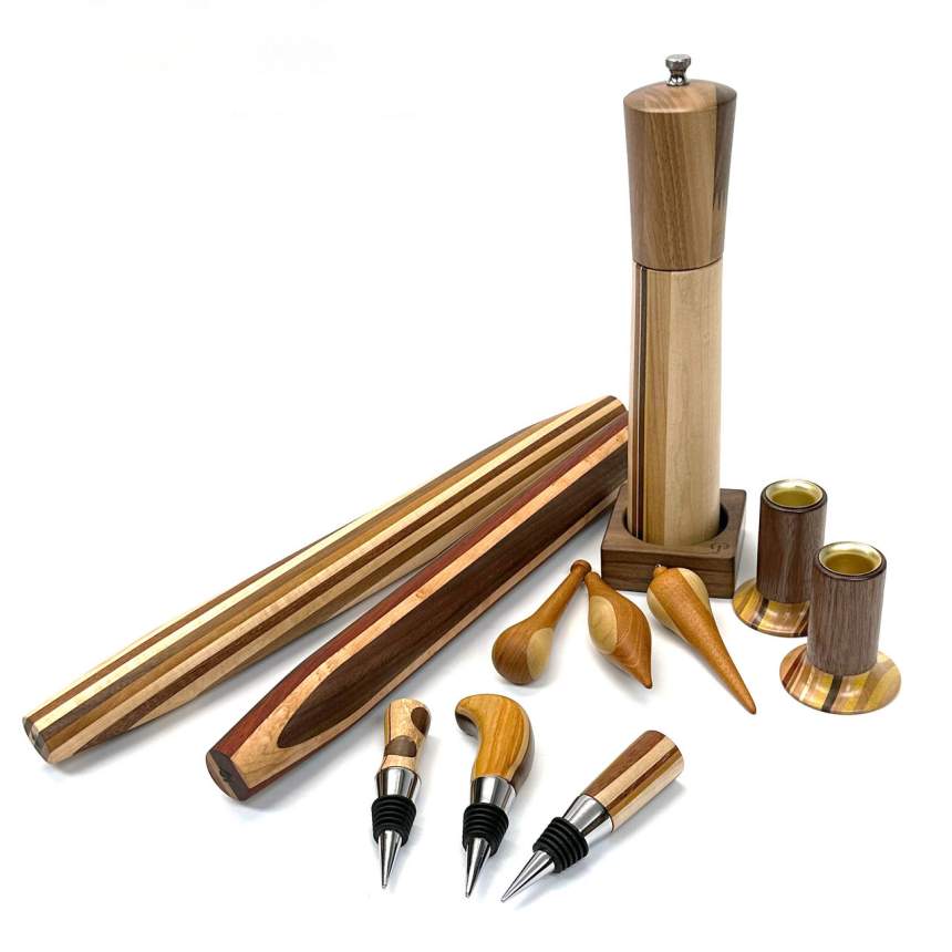 I love creating custom pieces using sustainable resources – local wood from fallen trees or wood from olive farms in Provence that would have been discarded otherwise. Milling and drying logs in NY has allowed me to expand my capabilities and forced me to think outside my comfort zone. It has also taught me much more about the characteristics of various wood species, and given me a new consciousness of how precious our resources are. I try to use every single piece of wood I cut. Even the smallest cutoffs can be flattened and glued together to create “chaos” pieces. Ornaments, bowls, knife handles… I’m always excited and surprised when the little bits from a larger creation can reunite to make smaller but sometimes even more beautiful works of art.