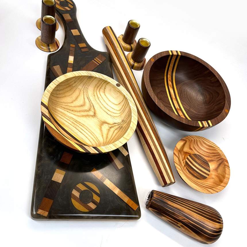 I love creating custom pieces using sustainable resources – local wood from fallen trees or wood from olive farms in Provence that would have been discarded otherwise. Milling and drying logs in NY has allowed me to expand my capabilities and forced me to think outside my comfort zone. It has also taught me much more about the characteristics of various wood species, and given me a new consciousness of how precious our resources are. I try to use every single piece of wood I cut. Even the smallest cutoffs can be flattened and glued together to create “chaos” pieces. Ornaments, bowls, knife handles… I’m always excited and surprised when the little bits from a larger creation can reunite to make smaller but sometimes even more beautiful works of art.