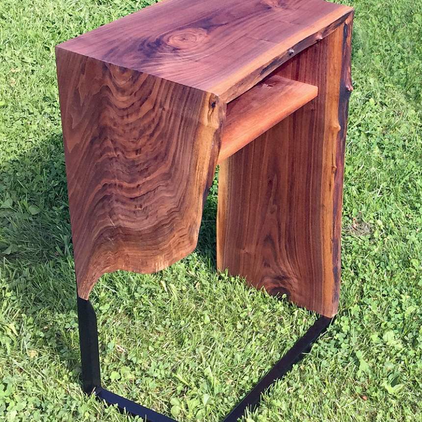 I grew up with a forest outside my backdoor and have many memories enjoying trees of all shapes and sizes. I also grew up in my father’s construction business using wood daily for utilitarian purposes like building walls. It wasn’t till my early 20’s when I had my own construction business that I realized the brilliance that nature gave us through wood; it was then that I found my passion for highlighting that beauty. Each piece is designed around the natural shape of the wood which I than accentuate, often times using steel to add strength, diversity and elegant lines that complement the wood. Years ago I realized how many large and old trees are cut down in towns that go to waste. I started inquiring about these trees and I am often able to reclaim them before it’s too late. That is where all of my projects start, taking an unwanted log to the local mill, carefully staking and drying the wood until the time comes when I can use it to create furniture that will last a lifetime