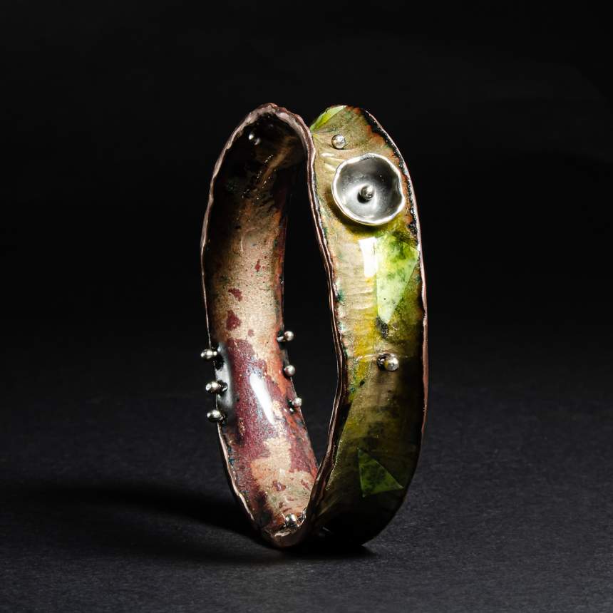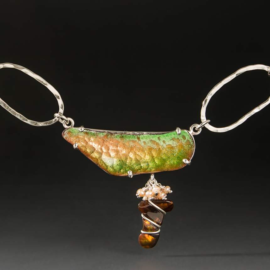 Using traditional silversmithing, enameling, lost wax casting and gem cutting techniques, I make fine art jewelry out of sheet, wire, and scrap metals. Discarded objects often become the starting point of my designs. I use hammers and anvils to forge curving forms that I see in my mind's eye. I cut away from the original object, using shears and saws. And when I'm down to bits and pieces, I melt the metal and cast it into new forms. Design is an adventure for me. An improvisation. An experiment. Since I picked up my first hammer, I have followed the artistic journey of metalsmithing. And I've never looked back.
