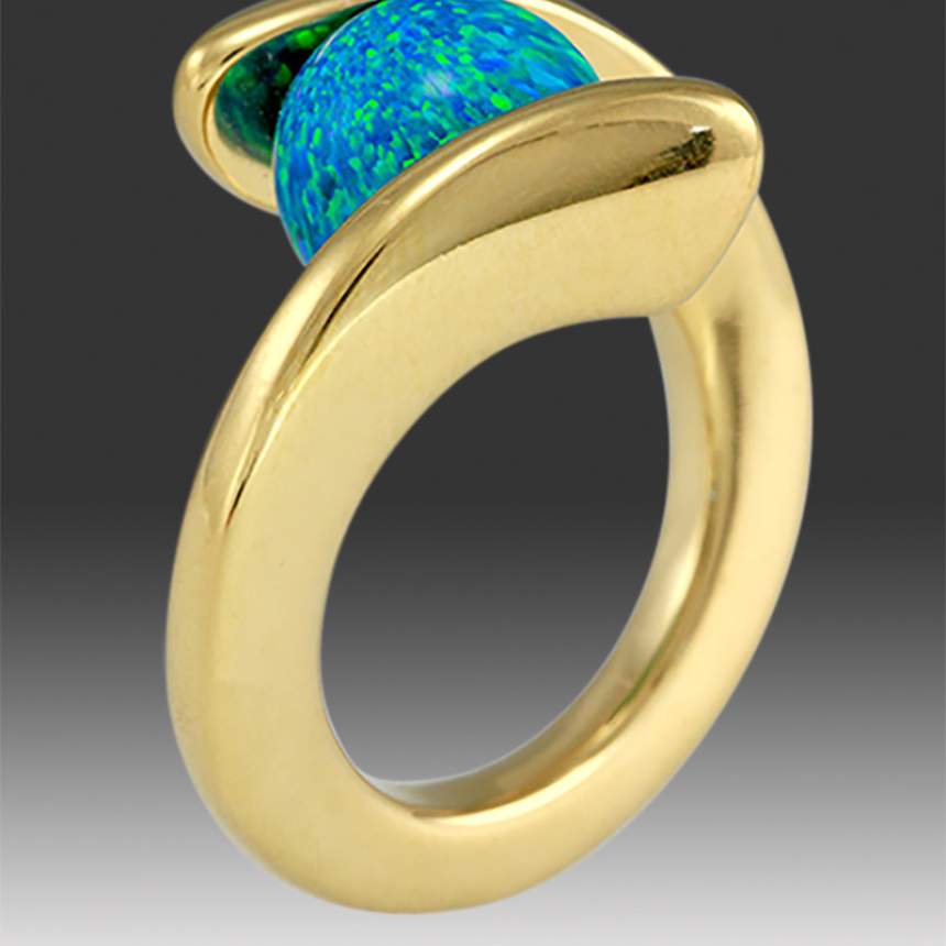 Our own unique patented tension mechanisms, all jewelry is lost wax cast and finished in our Tucson studio. William makes the original designs out of metal or wax, creates a master, then makes rubber molds we use in the lost wax casting process. We assemble and finish all work on premises. Our lines include pendants, earrings, bracelets and rings. We make 3 distinct lines; sterling silver, fine silver plate over bronze, and our Luxe line is vermeil, or 14k gold with crystals set in the bands. Each piece comes with other stones or marbles to be interchanged.