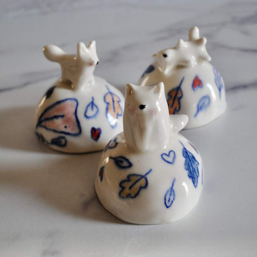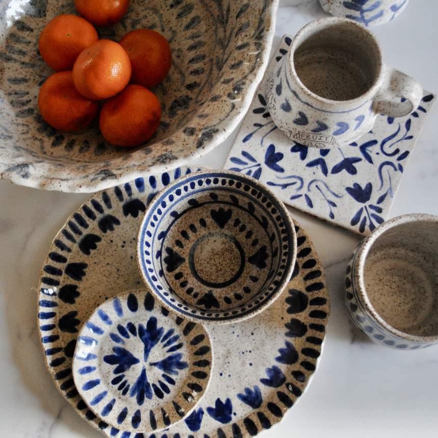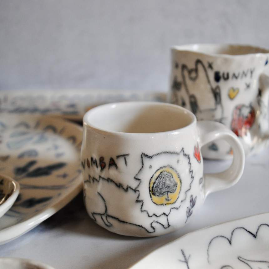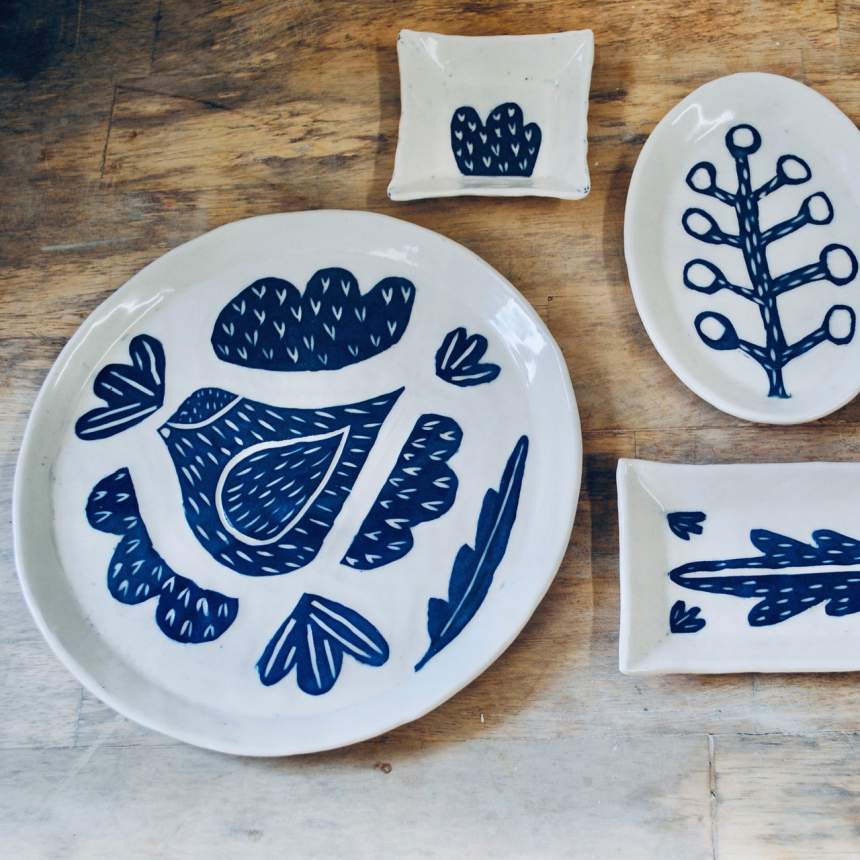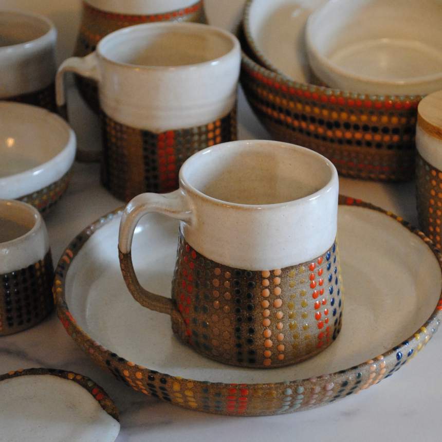 I create functional and sculptural ceramics. They are intended to decorate and enhance home life. I want someone to grab one of my mugs and get excited about using it to sip their morning coffee. I want someone to look at one of my sculptures on their shelf and feel joy. My pieces have a tactile quality, they are filled with brushwork, sketches and bright colors. I make soft thrown and hand molded pieces with bold modern designs.