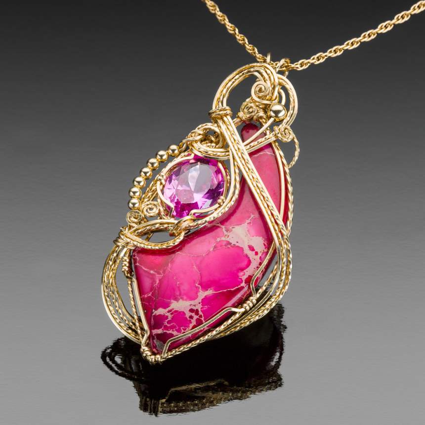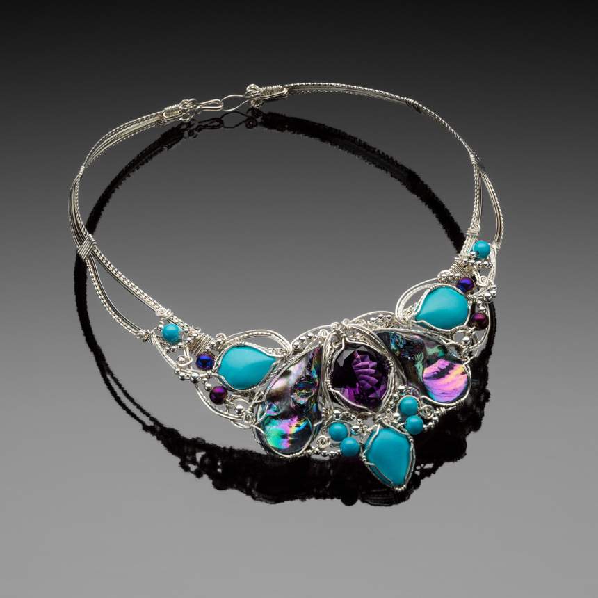 Since 1995, I have been creating and selling unique, handmade jewelry in sterling silver and 14k gold fill. Each setting is made directly on the stone or gem, beginning with a gold or silver piece of wire that is banked, twisted, and weaved to create a wearable piece of artwork. Items include pendants, earrings, and bracelets. I am a titled Roycroft Master Artisan in Jewelry. Awards include: Best of Show Canandaigua, Purchase Award Allentown Art Festival Buffalo, as well as first and second-place awards at the Quaker Arts and Lewiston Art festivals.