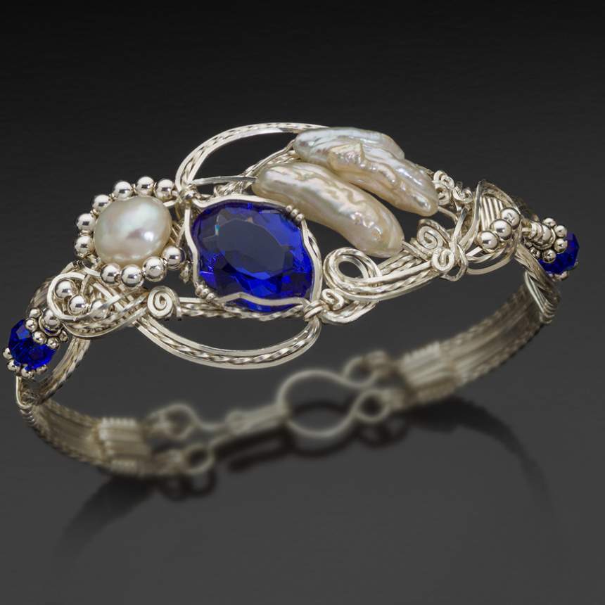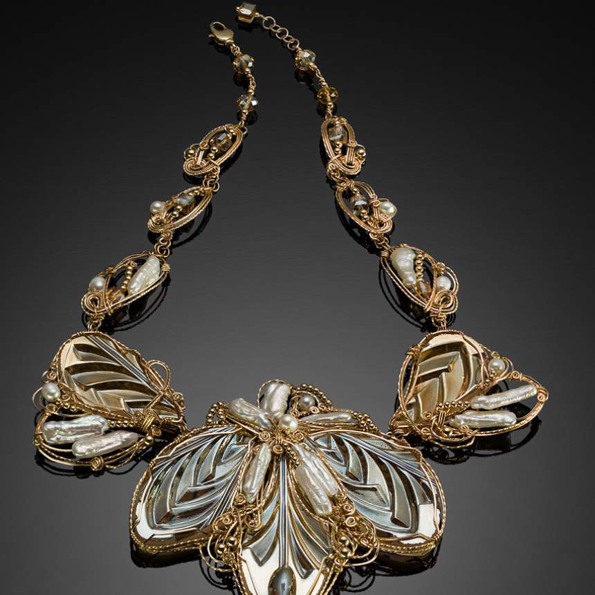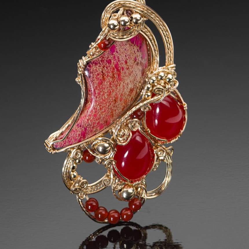 Patty is a self taught award winning artist since 1995. Her work is fashioned from 14 kt. gold-filled or sterling silver wire that is twisted, bent & woven directly on the stones or gems to create the one of a kind settings. This is a no fire technique. Her pieces include pendants, earrings & bracelets. Signature pieces include Patty cutting customer's vintage porcelain or crystal that is cut, ground & then set. She is licensed by the Margaret L. Wendt Foundation to re-purpose damaged Roycroft pottery for jewelry. Patty is a tilted Roycroft Master Artisan in jewelry since 2011 with many awards received over the years for her jewelry designs. The unique settings are like wearable art.