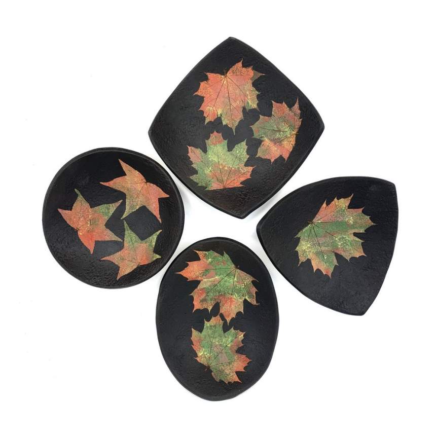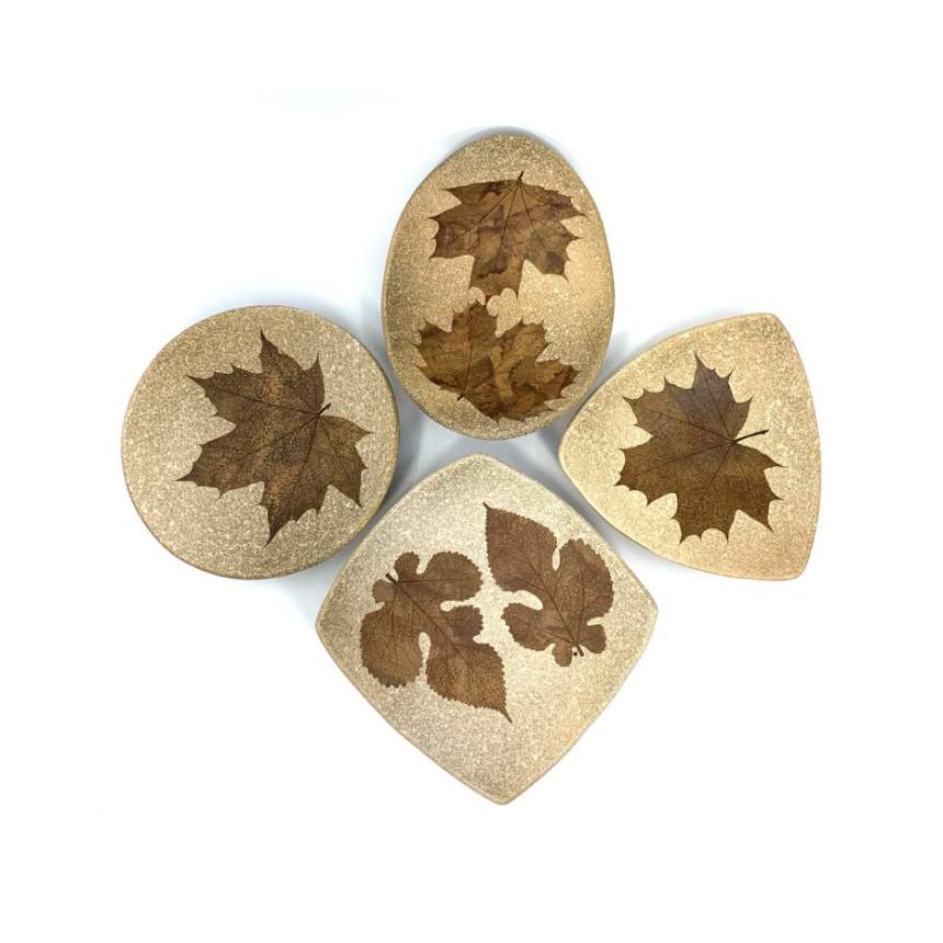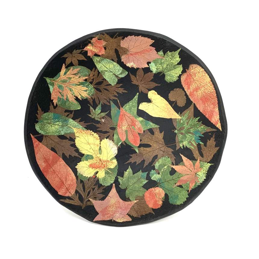 A love for nature and trees is core to my being. My ceramics capture the fleeting beauty of leaves in a permanent medium. My work is hand built high fire stoneware bowls and art pieces. Made with Pennsylvania stoneware clay, mineral colors and leaves. Each piece begins with a quiet walk in the woods on my rural Pennsylvania farm to draw inspiration and collect leaf material.