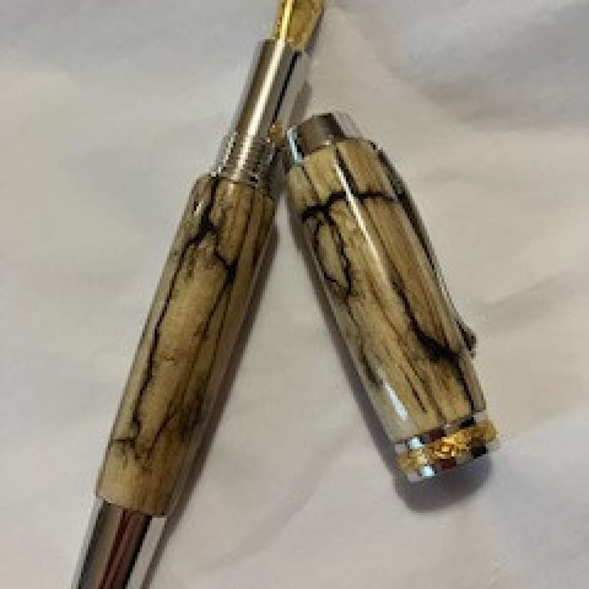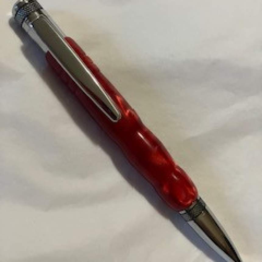 Description of my work. Horner’s Pens I create one of-a-kind writing instruments and various hand turned items All my works are created by me> I chose different types of wood, I hand poured acrylics and items embedded in clear and colored resins to turn to create the bodies of my works. The material is cut to the length I need. A hole is drilled length wise for a brass tube to give the pen strength. The material is turned on my lathe, sanded and a finish applied as it is spinning. Different metal components are chosen that will complement the turned body. Titanium-gold, 22k gold, rhodium and platinum are used Items include Ballpoint, rollerball, and fountain pens. Also Office accessories, letter openers and magnifying glasses are hand turned on my lathe. Different styles of key chains and fan pulls are made.