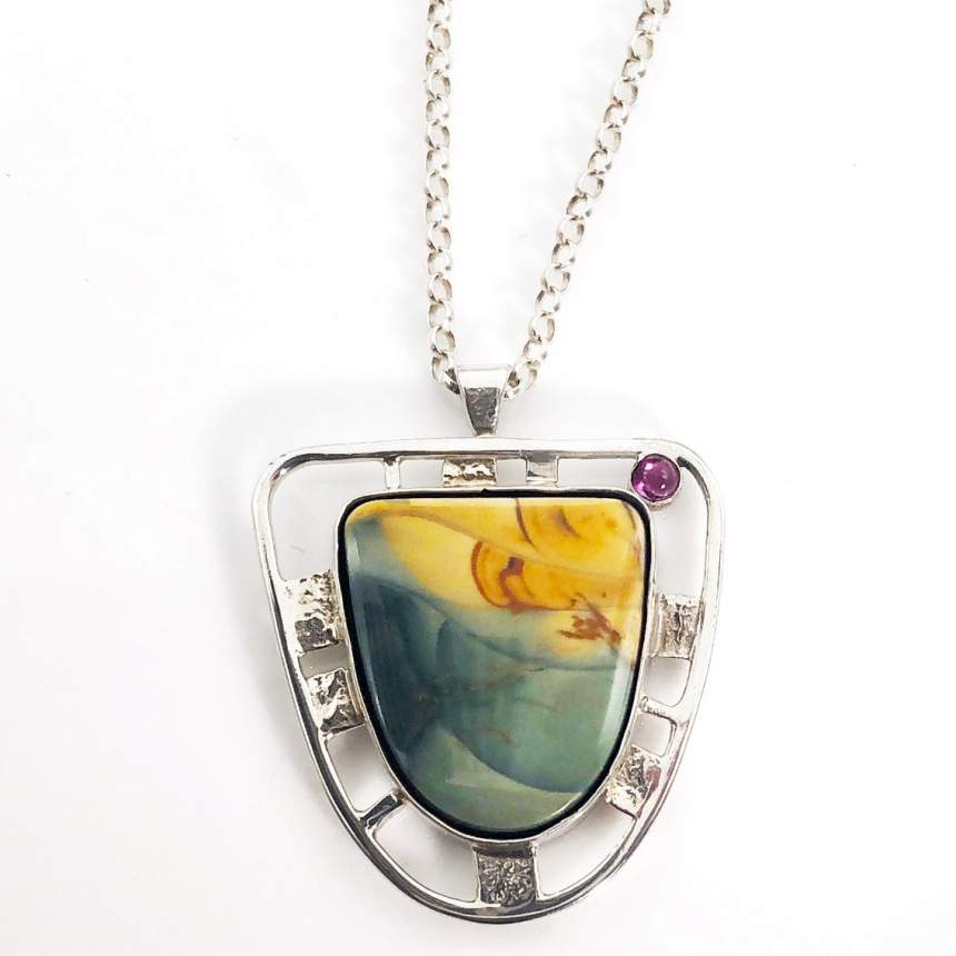 I’ve been designing and building jewelry at my basement workbenches for many many years. I think of myself as more of a craftsman than artist, because I often find the process of designing a piece of jewelry to be a challenge, while actual fabrication occurs more naturally. My jewelry is constructed of Sterling Silver, using both traditional and contemporary techniques such as hammer-forging, reticulation, and/or a rolling mill to create a range of textured surfaces on each piece. My designs are typically organic and asymmetrical in style, often incorporating semi-precious gems or beach stones from the Maine shoreline. Complete hand-fabrication gives me great satisfaction because each piece is a unique result of my own ideas, planning, skill and effort.