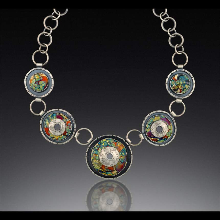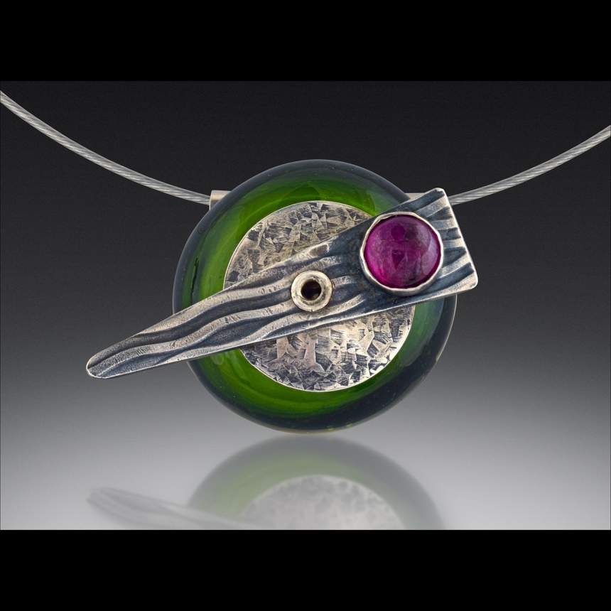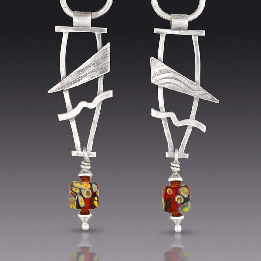 We make handcrafted jewelry with flameworked and fused glass, enamel, silver, copper, and semi-precious stones. Flameworked glass, crafted in a 1200 degree torch flame, is a medium increasingly appearing in our work. We value the gorgeous color palate of opaque, transparent and reactive glass available today, as well as its decorative and sculptural possibilities. The avenues of self-expression possible melting glass at the torch, or in a kiln, and combining it with the malleable properties of metal, are seemingly endless. We also have some fun with bottle glass, and appreciate its eco-friendly aspects and simple beauty.