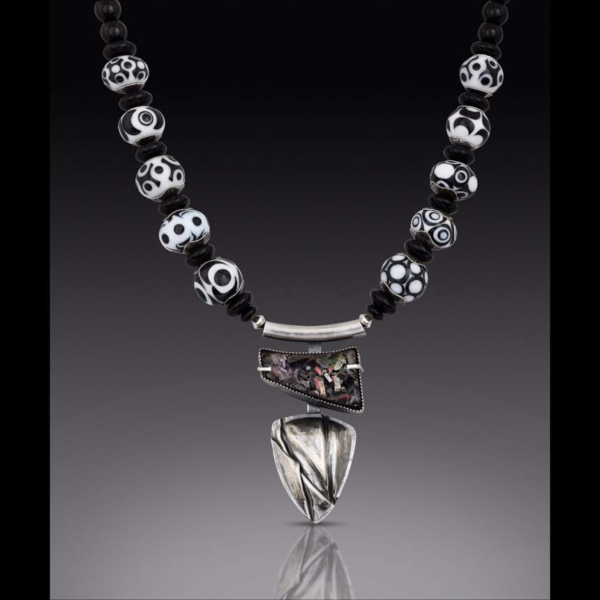 We make handcrafted jewelry with flameworked and fused glass, enamel, silver, copper, and semi-precious stones. Flameworked glass is a medium increasingly appearing in our work. We value the gorgeous color palate of opaque, transparent and reactive glass available today, as well as its decorative and sculptural possibilities. The avenues of self-expression possible melting glass at the torch, or in a kiln, and combining it with the malleable properties of metal, are seemingly endless. We also have some fun with bottle glass, and appreciate its eco-friendly aspects and simple beauty.