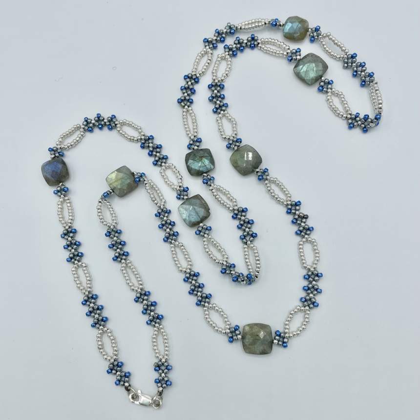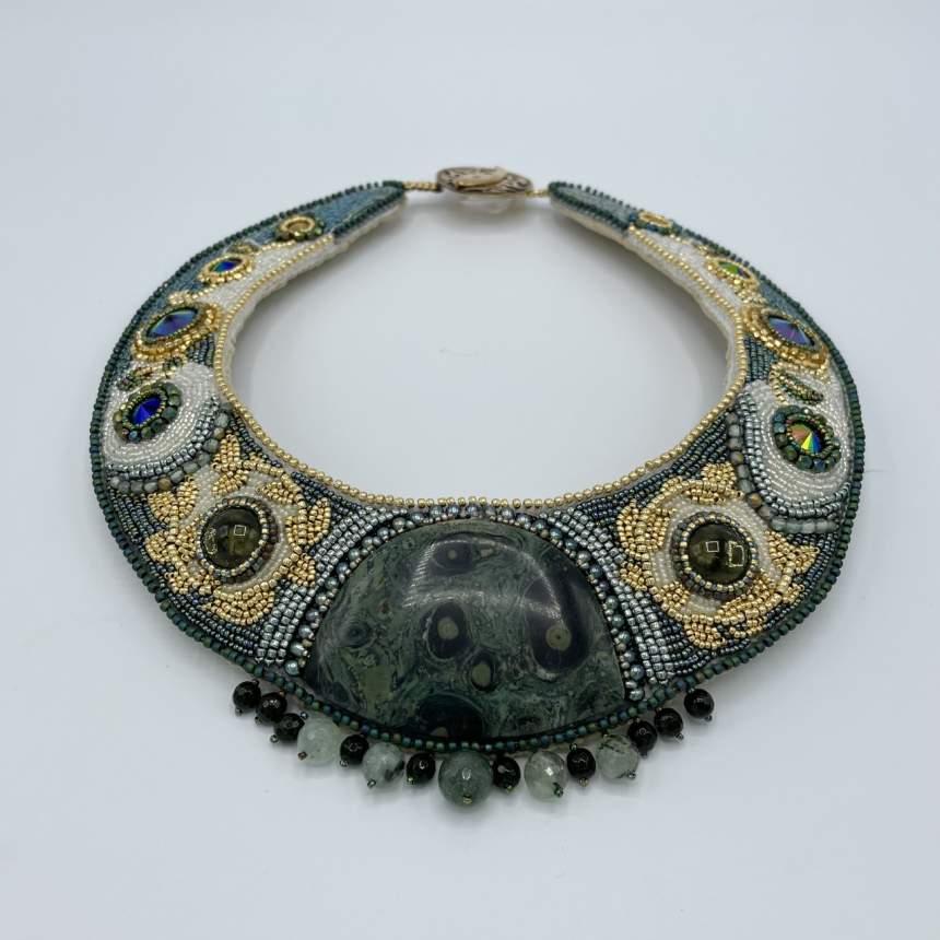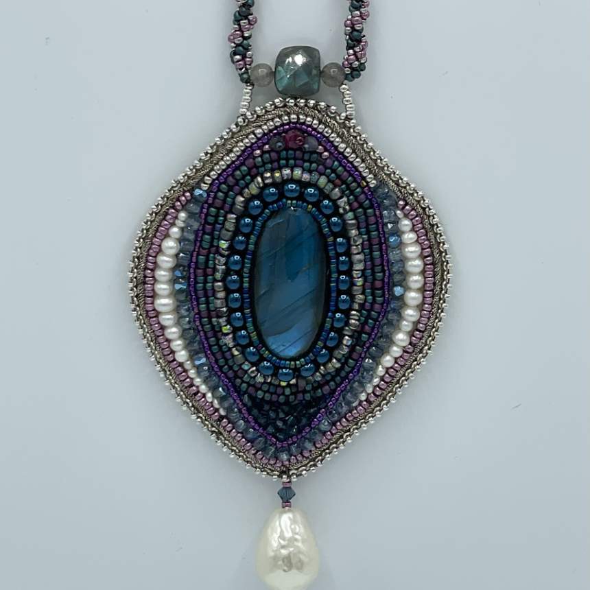I make original, one of a kind jewelry in bead embroidery and bead weaving, based on styles and motifs from the past. Materials are very-good-to-fine glass, crystals, semiprecious stones and freshwater pearls, with most fittings either handwoven or cast of silver, gold filled, pewter or bronze. I use both new and vintage/antique elements. Each piece is made meticulously crafted with needle and thread, one bead at a time. I derive great pleasure in spending the many hours that may be necessary so that each piece is a work of art. Pieces must also be comfortable to wear and suitable for modern uses.