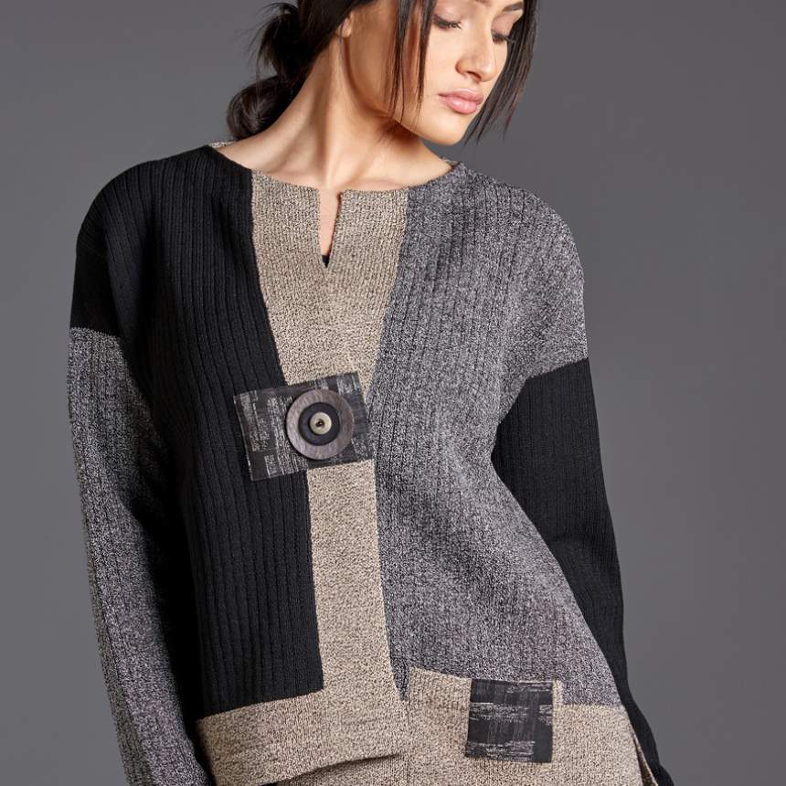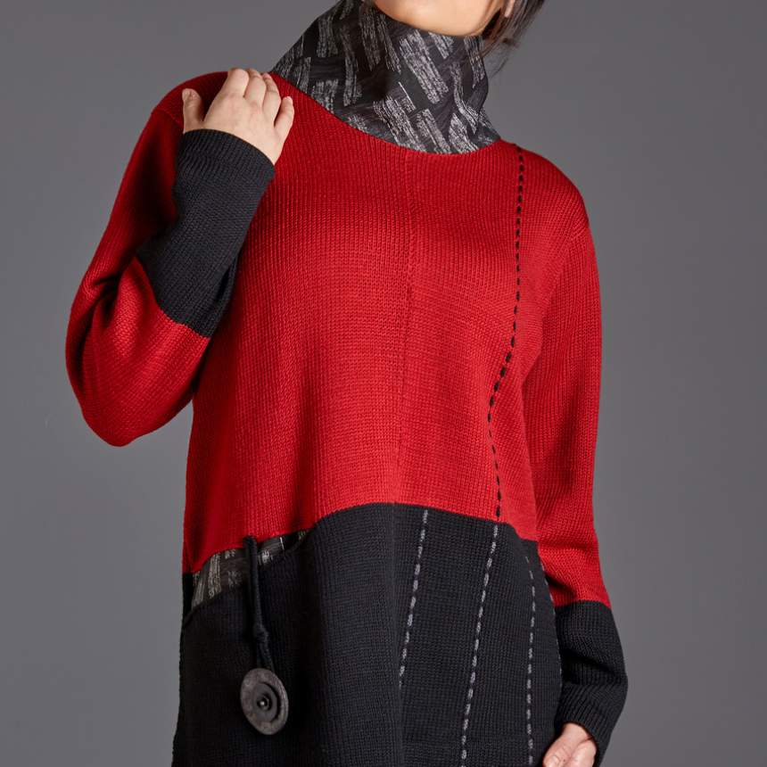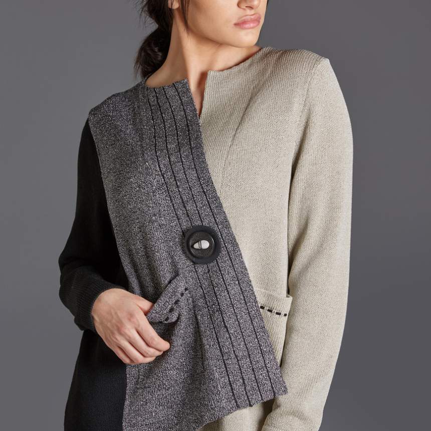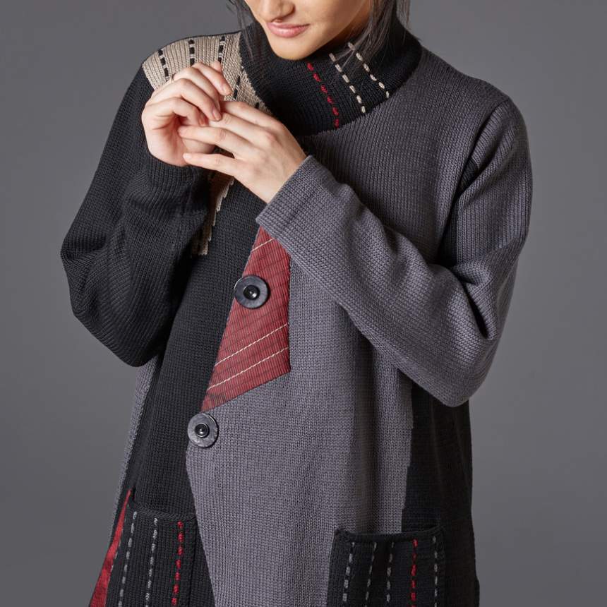 Contemporary Knitwear hand loomed with the focus on texture, color and design made of natural fibers. My style incorporates strong architectural lines with the addition of adding fabrics and intricate stitching.
