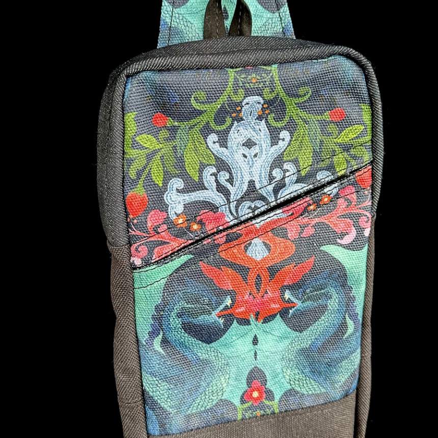 I am a creator of handmade everyday objects of adornment and storage. My training is informal and ongoing, with items created from fabrics, glass, and stone. Current fixations are handmade cross-body bags and wallets from dead-stock/remnant upholstery fabrics, and crocheted jewelry with pottery, glass, and stone. Functionality and visual appeal are key components in my work. The time spent finding the perfect angles, textures, and color combinations to create a unique work of art is both my meditation and expression. Just like birds assemble fantastical found treasures, my goal is to create items myself and others will enjoy gathering for their own personal collections.