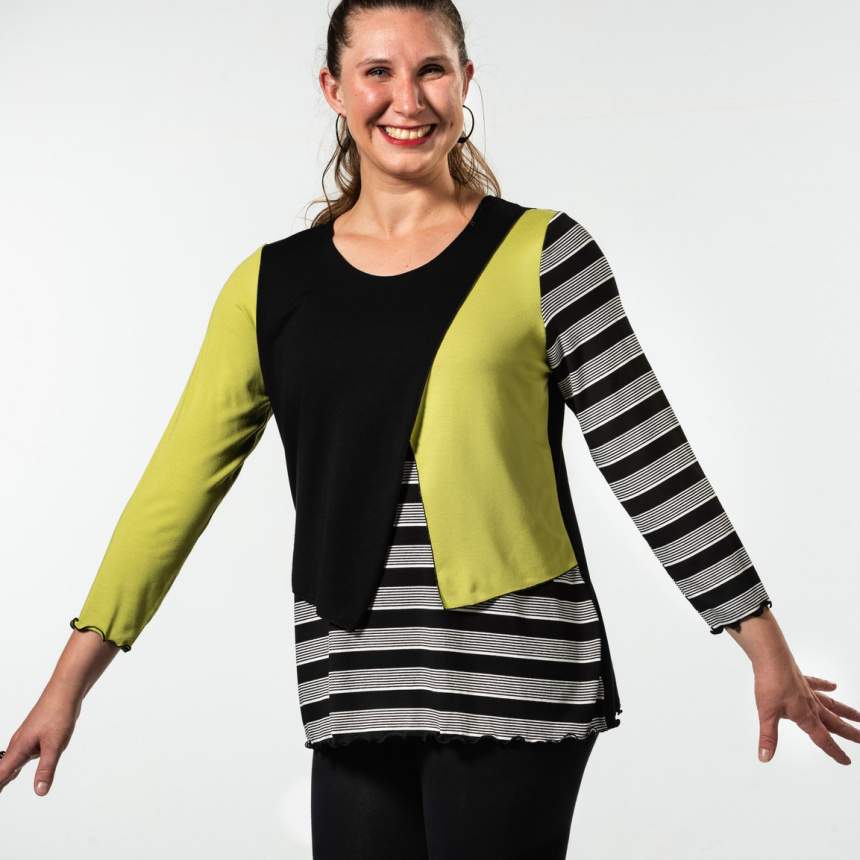 I design and make sustainable plant based clothes. From a doodle on a page I bring my geometrics designs to life. They have a special fit and each one is made individually. Some are one of a kinds and some are repeats. Geometric shape from ancient thru modern art is my thing. I love color and black and the mix of pattern. They are visually balanced and make many think. My sewing techniques mesh to form a finished yet whimsical look that can be dressed up or down.