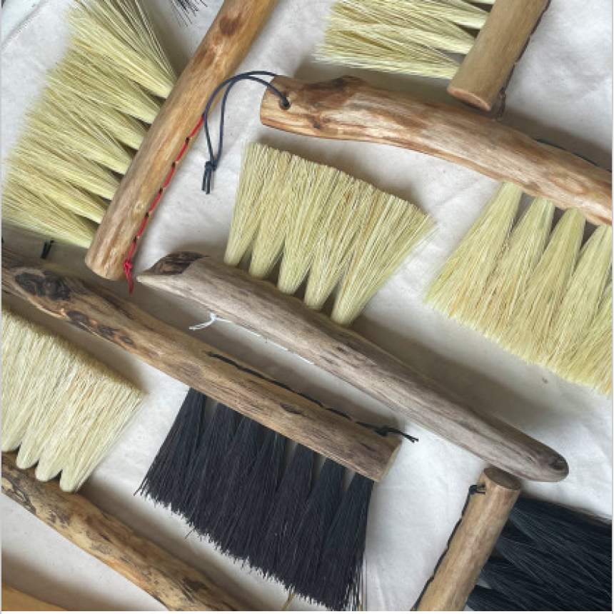 As a broom maker, I honor traditional craft and the natural beauty of the materials I work with. Sourcing driftwood from the shores of Lake Erie, just 20 miles from Chautauqua, I create each broom with intention and purpose. Husk Brooms are functional, one-of-a-kind pieces that celebrate the resilience and beauty of the natural world. I strive to work with the wood in its raw state, respecting the curves, knots, and grains that make each piece distinct. My products vary in sizes and abilities, but all center around function and design. Each broom and brush are small works of art that connect people to the authenticity of nature. Through my craft, I invite others to pause and appreciate objects created by hand. Witness the details and delight knowing the stitches were stitched by hand, or a handle was carved on a traditional shavehorse. I seek to connect the traditional craft of broom making with a modern perspective that bridges past and present.