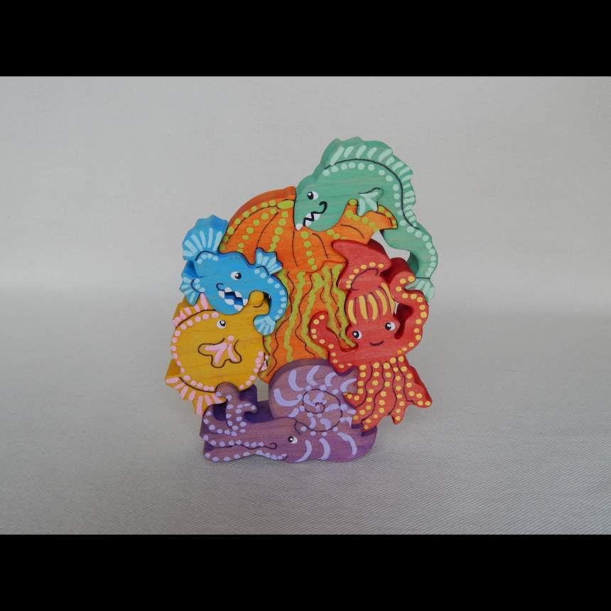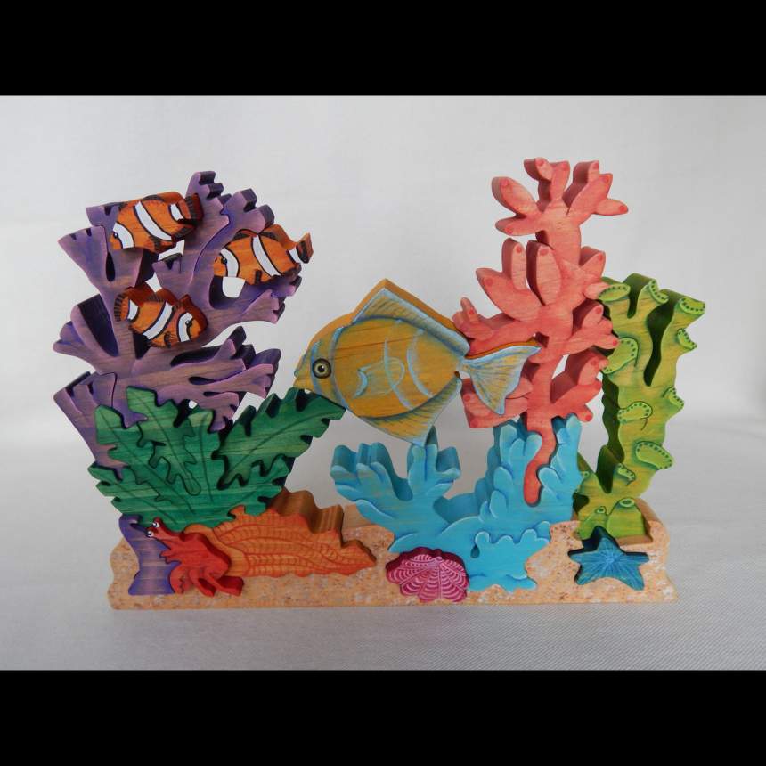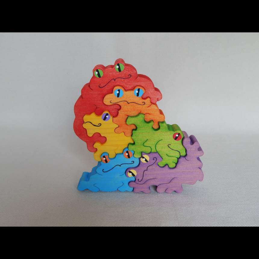 Creating unique and original art puzzles has been our passion since 1984. All of our work is individually cut by hand on a scroll saw, sanded,stained and painted. To share both new and treasured designs continues to bring joy to our hearts. With respect to our natural world as well as human kind, our work is safe and non-toxic. This years images reflect our love of nature, using color, design and our own imagination to bring our puzzles to life.