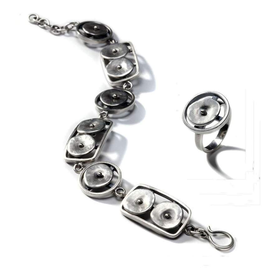 Virginia’s line is all made using genuine sterling silver, 14k gold, semi-precious stones, or freshwater pearls combined in a unique way in her own distinctive style. Each high quality piece is designed and handcrafted by the artist. The main technique she uses is to make an original model out of carved or molded wax or fabricated metal, and then have them molded and cast into sterling silver or 14k gold. Much of Virginia’s newer work is completely fabricated and each piece is an original. Many of Virginia's pieces have movable elements, which as well as being beautiful to look at and interesting to listen to, also inspire a tactile interaction with the piece. She is inspired by antiquity and by modern designs. Her work is an expression of the juxtaposition of these two opposing elements. Her pieces have a strong sense of modernity with a sculptural depth that translated into a work of art that can be worn.